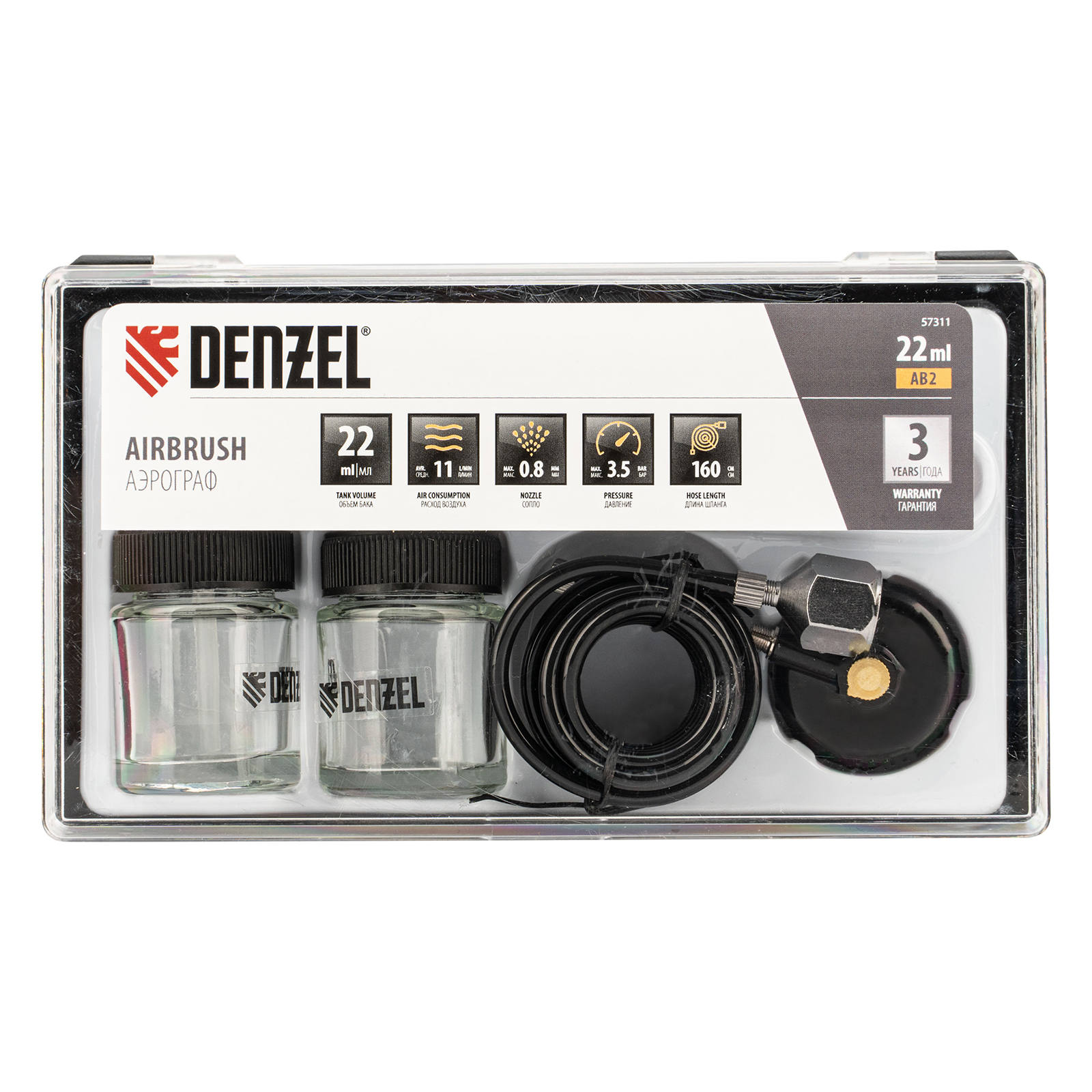 Аэрограф с нижним бачком AB2, 0,8 мм, 22 мл, 11 л/мин Denzel в Санкт-Петербурге