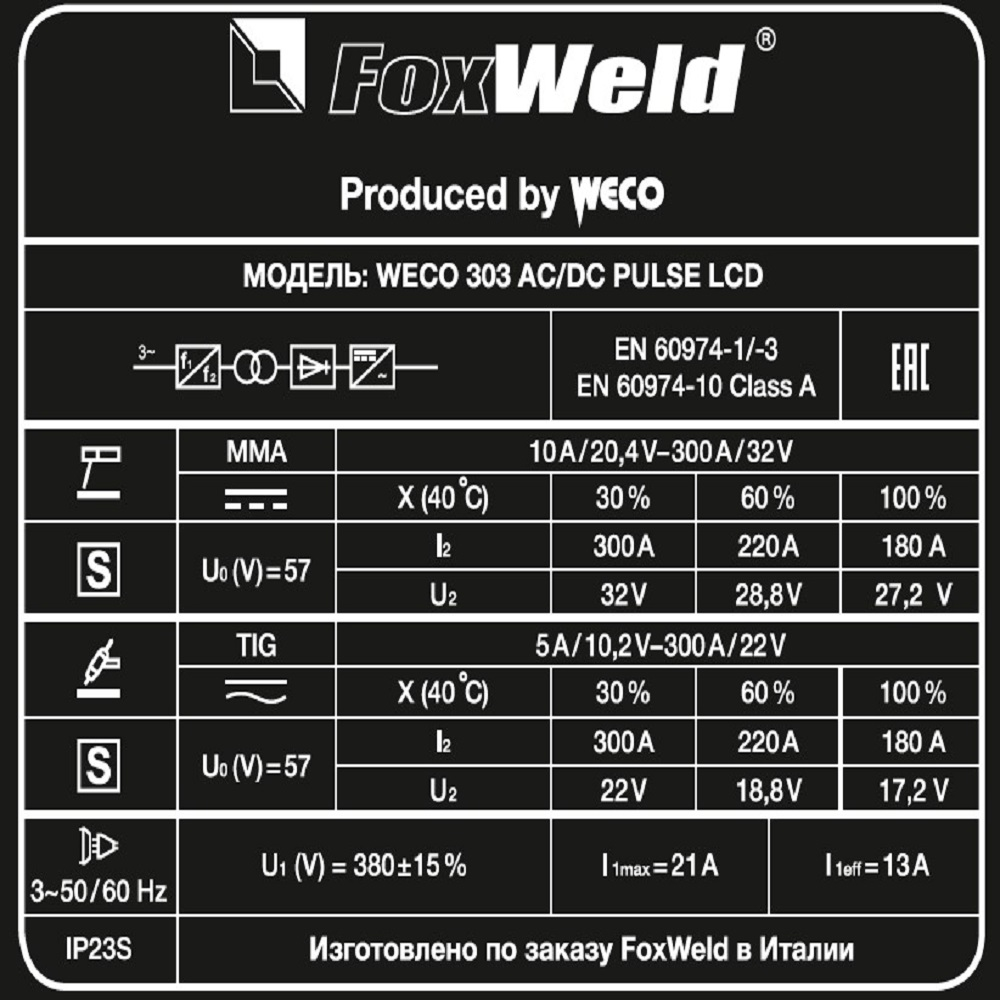 Аппарат аргонодуговой сварки WECO TIG 303 AC/DC PULSE LCD в Санкт-Петербурге
