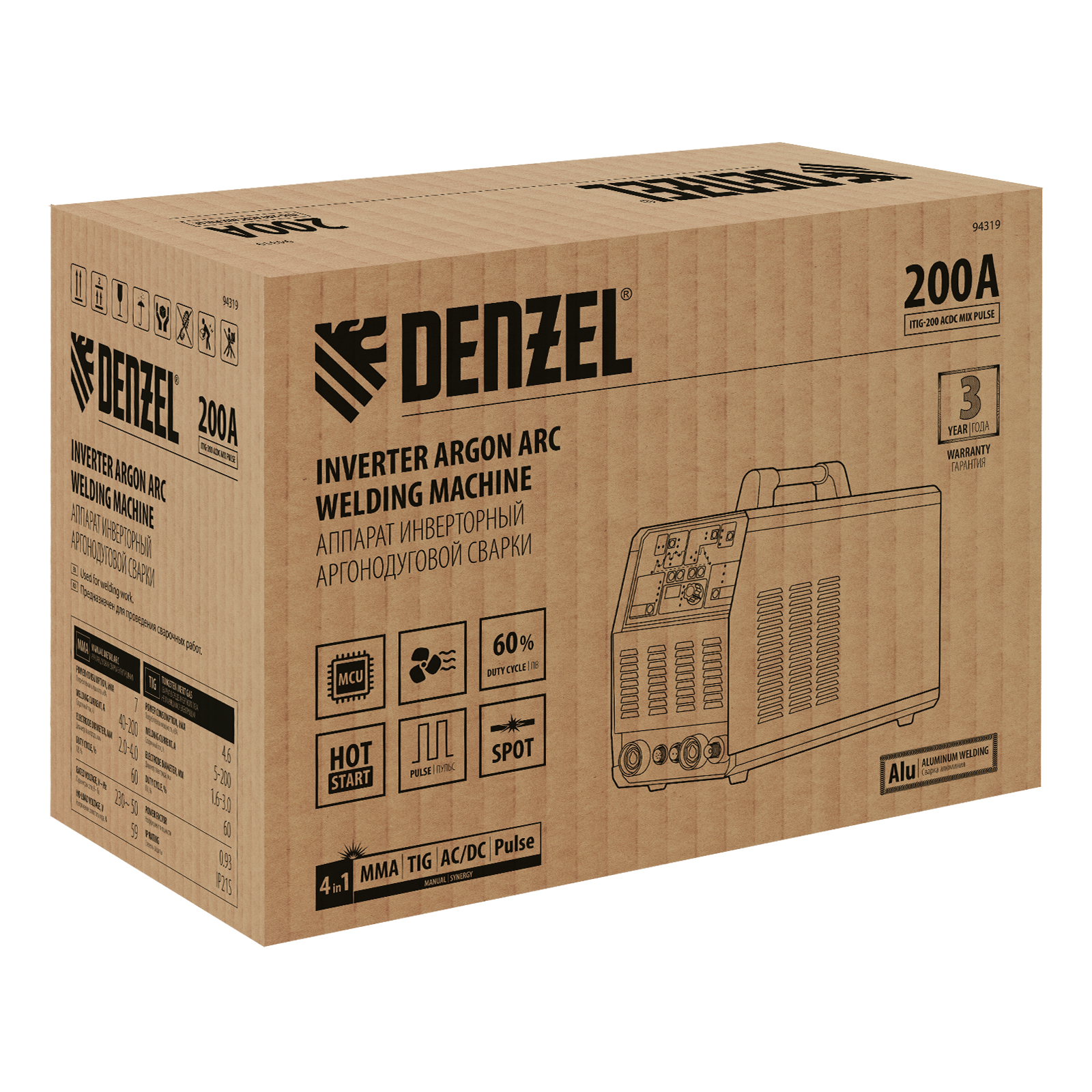 Аппарат инвертор. аргонодуговой сварки ITIG-200 DС Pulse Cold Weld, 200 А, ПВ 60% Denzel