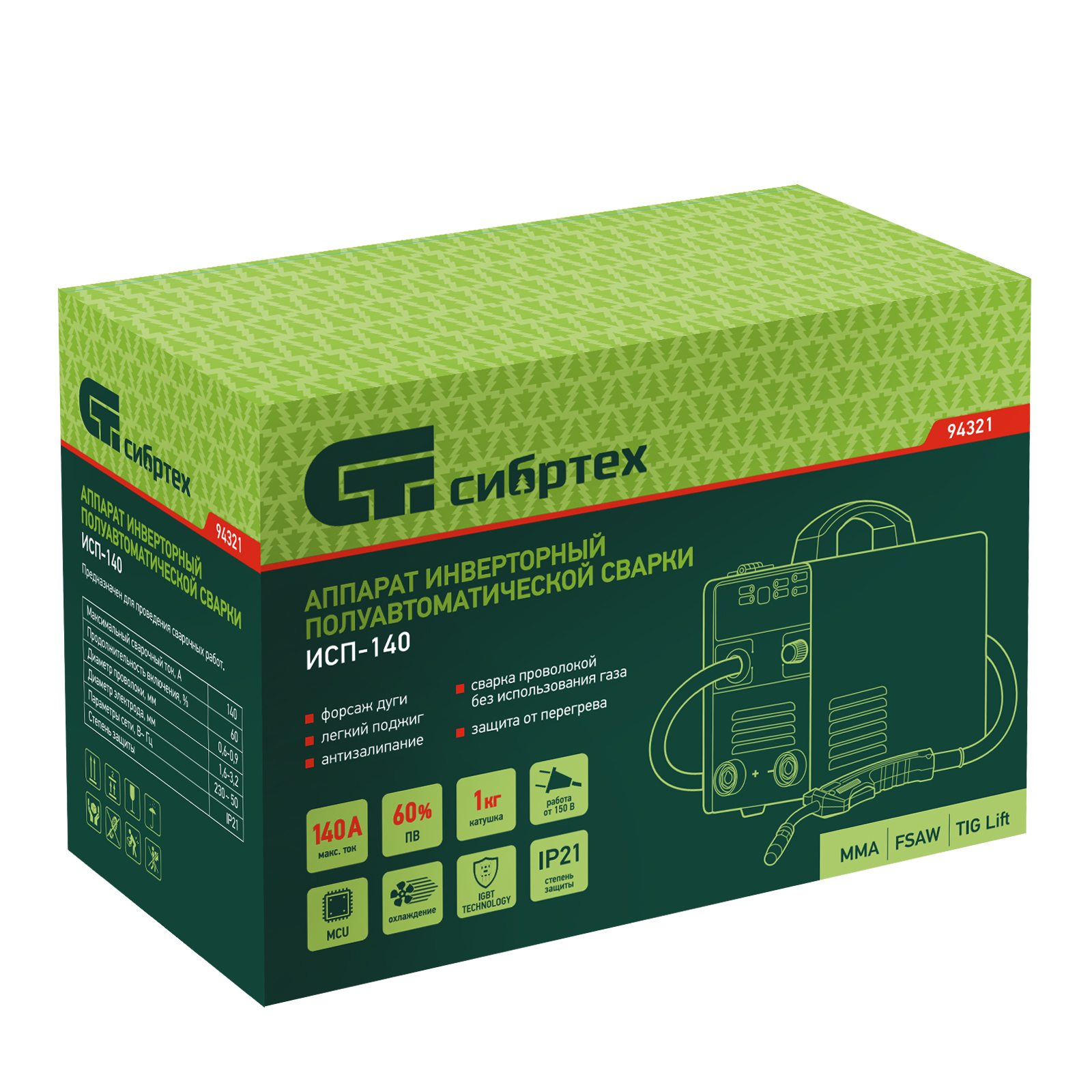 Аппарат инвертор. полуавтомат. сварки ИСП-140, 140 А, ПВ 60% Сибртех в Санкт-Петербурге