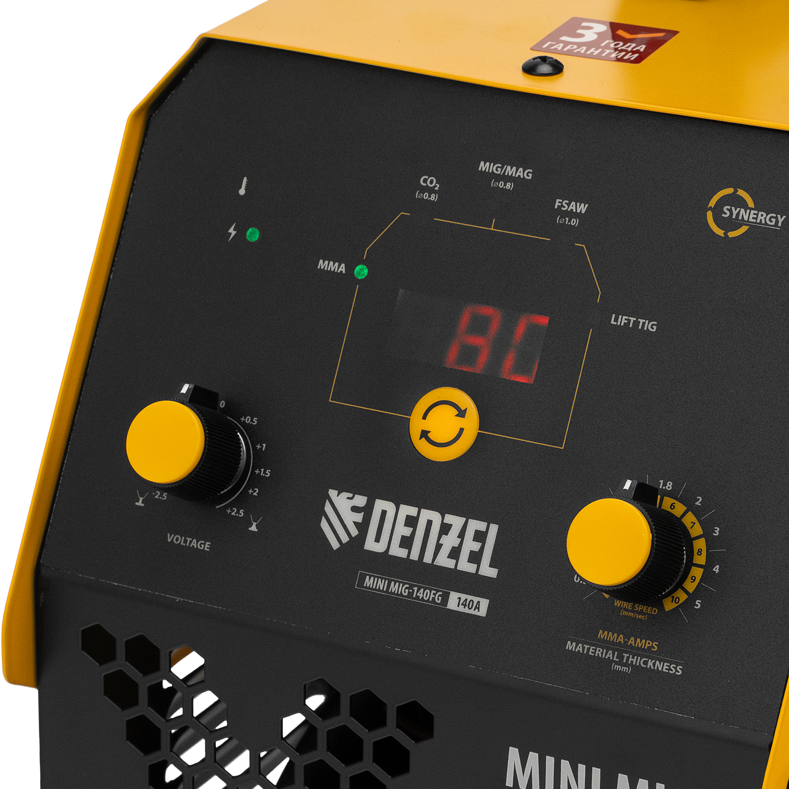 - Удобная эксплуатация — на панели управления предусмотрены индикаторы включения, режимов сварки, синергетического управления, а также световая сигнализация перегрева.