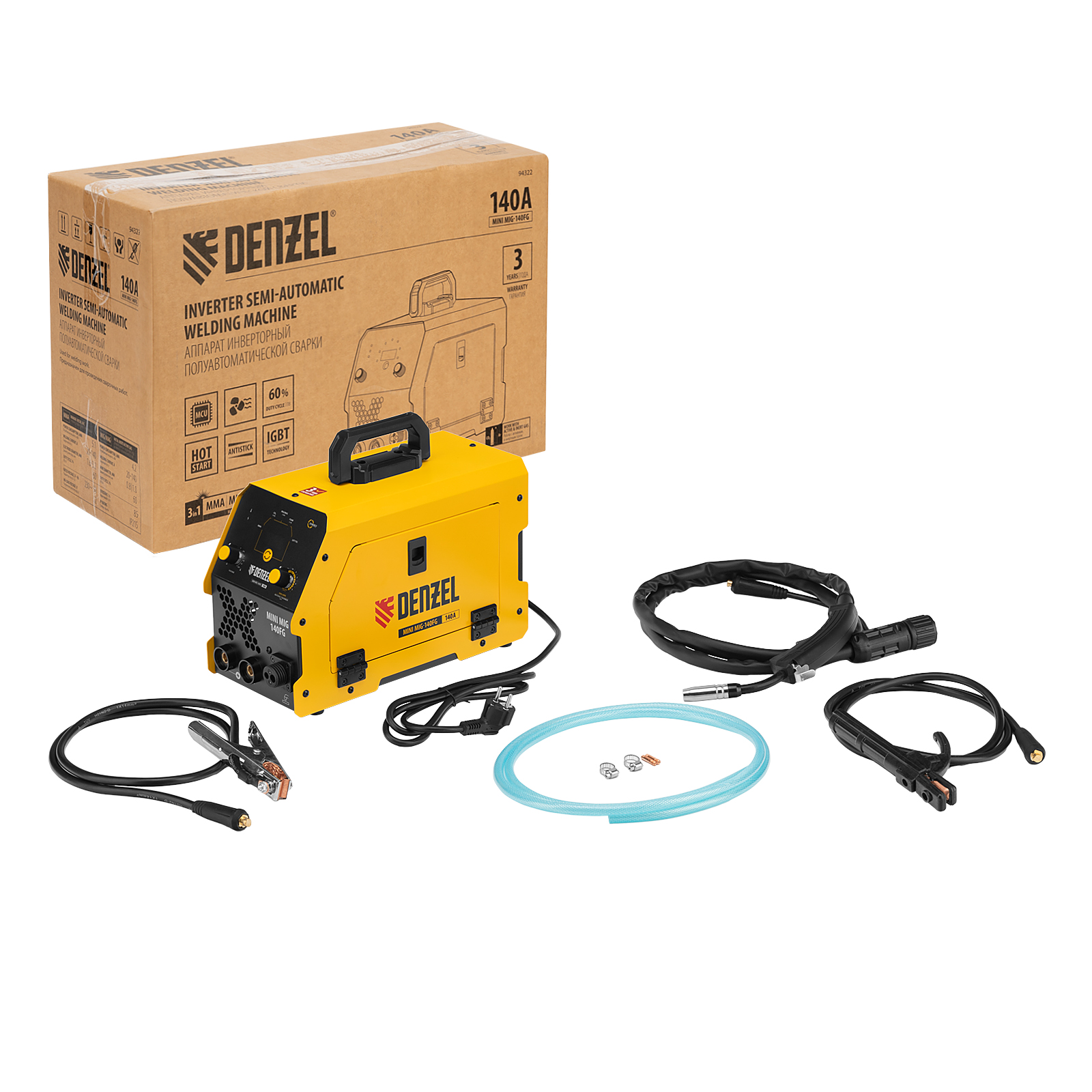 Аппарат инвертор. полуавтомат. сварки Mini MIG-140FG, 140 А, ПВ 60% Denzel в Санкт-Петербурге
