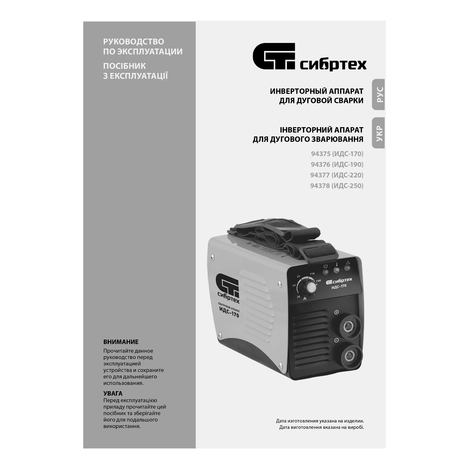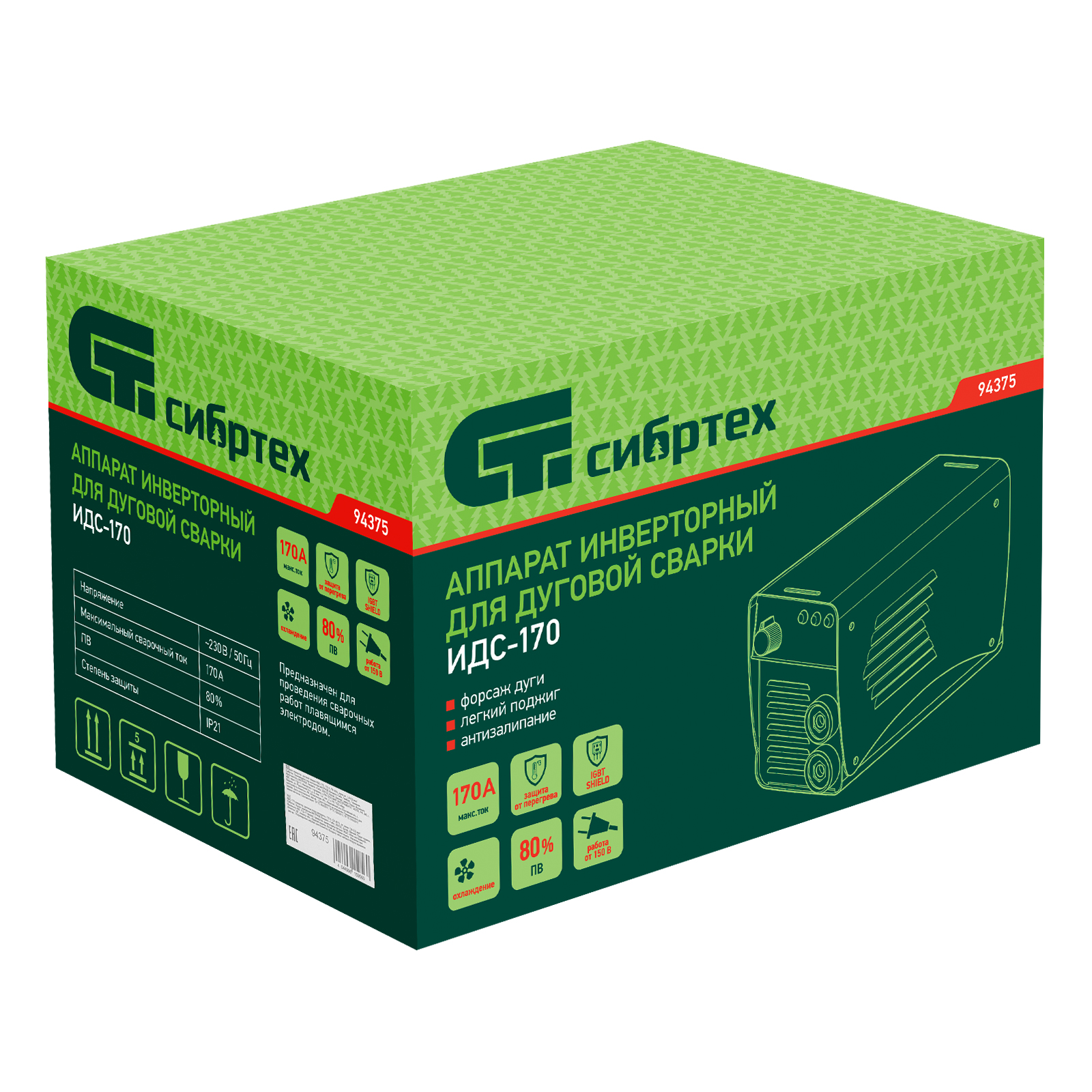Аппарат инверторный дуговой сварки ИДС-170, 170 А, ПВ 80%, диаметр электрода 1.6-3.2 мм Сибртех в Санкт-Петербурге