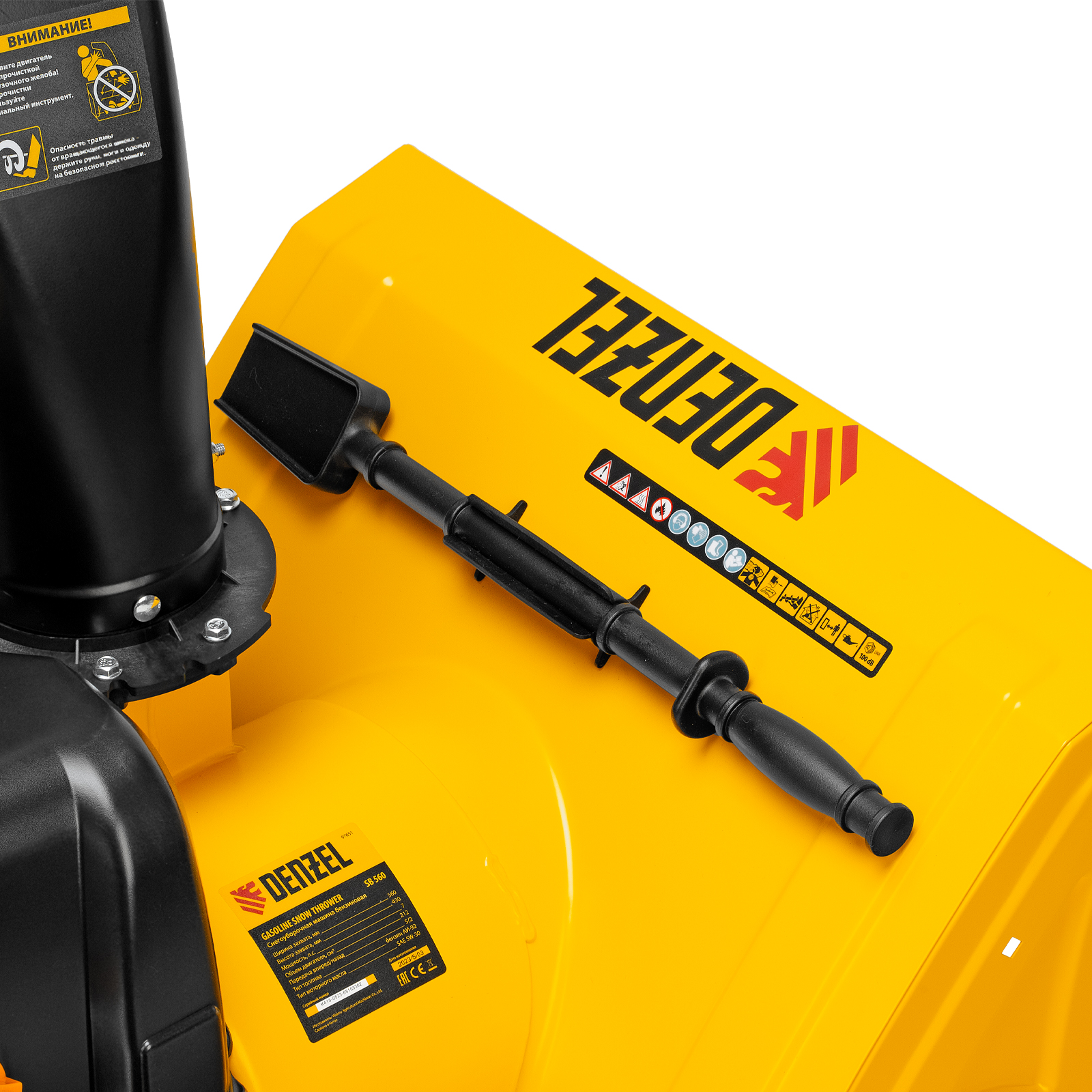 - Возможность увеличения ширины захвата до 660 мм — на кожух шнека можно установить подрезатели Denzel 97101 (не входят в комплект поставки).