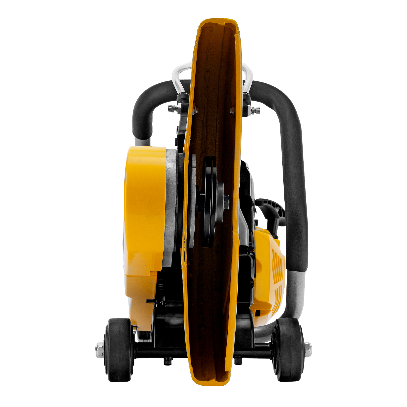 - Безопасность — режущий диск закрыт защитным кожухом, блокиратор курка газа исключает случайный запуск двигателя.