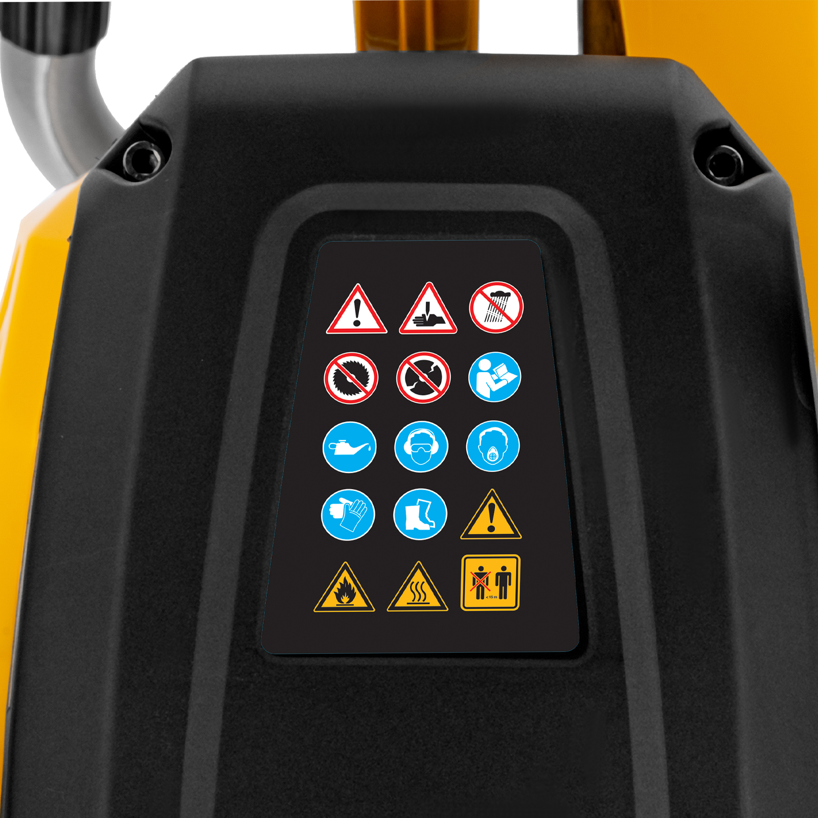 - Безопасность — режущий диск закрыт защитным кожухом, блокиратор курка газа исключает случайный запуск двигателя.