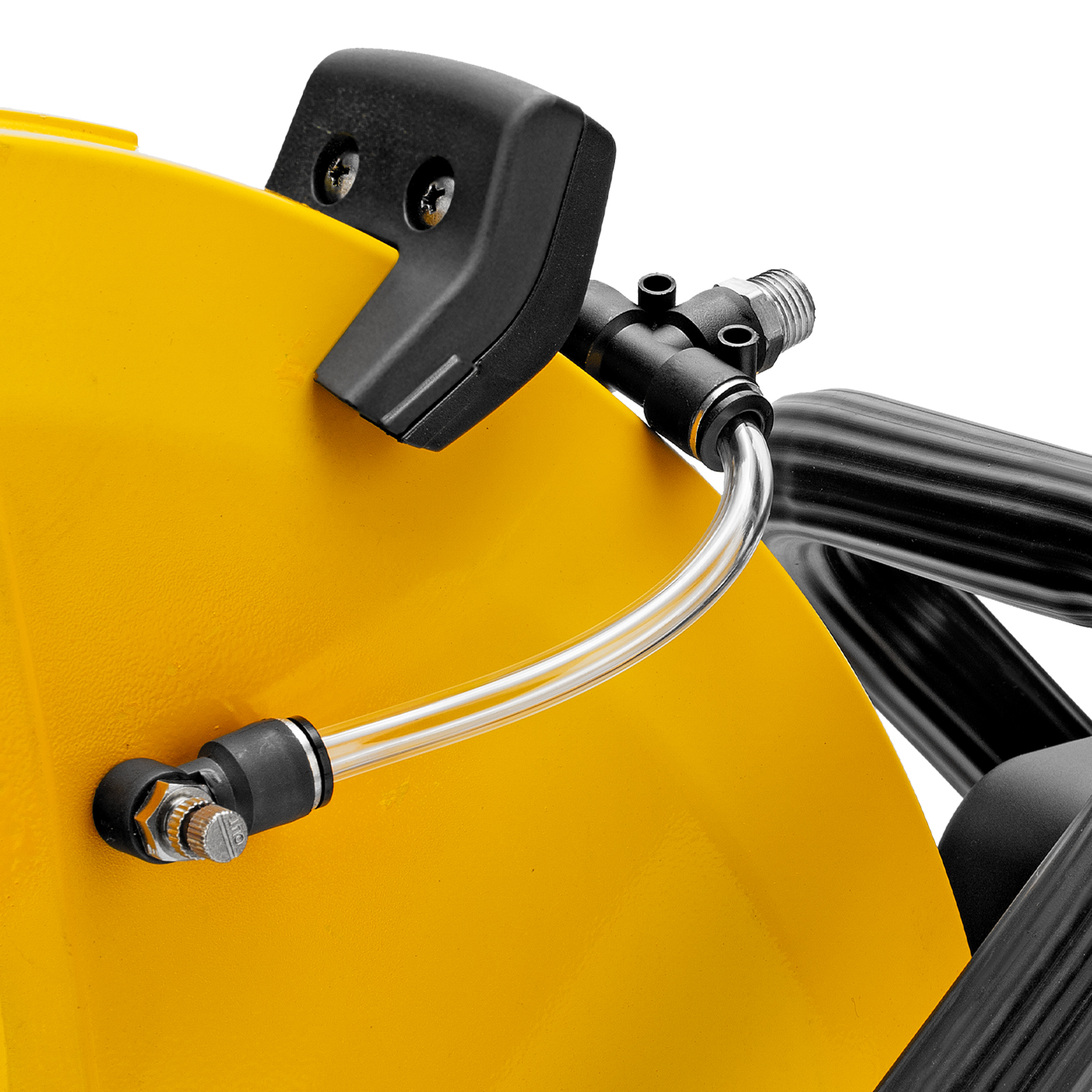 Бензорез оснащен универсальным штуцером для подачи воды. Использование водяного охлаждения позволяет уменьшить количество образующейся пыли и снизить нагрузку на двигатель.