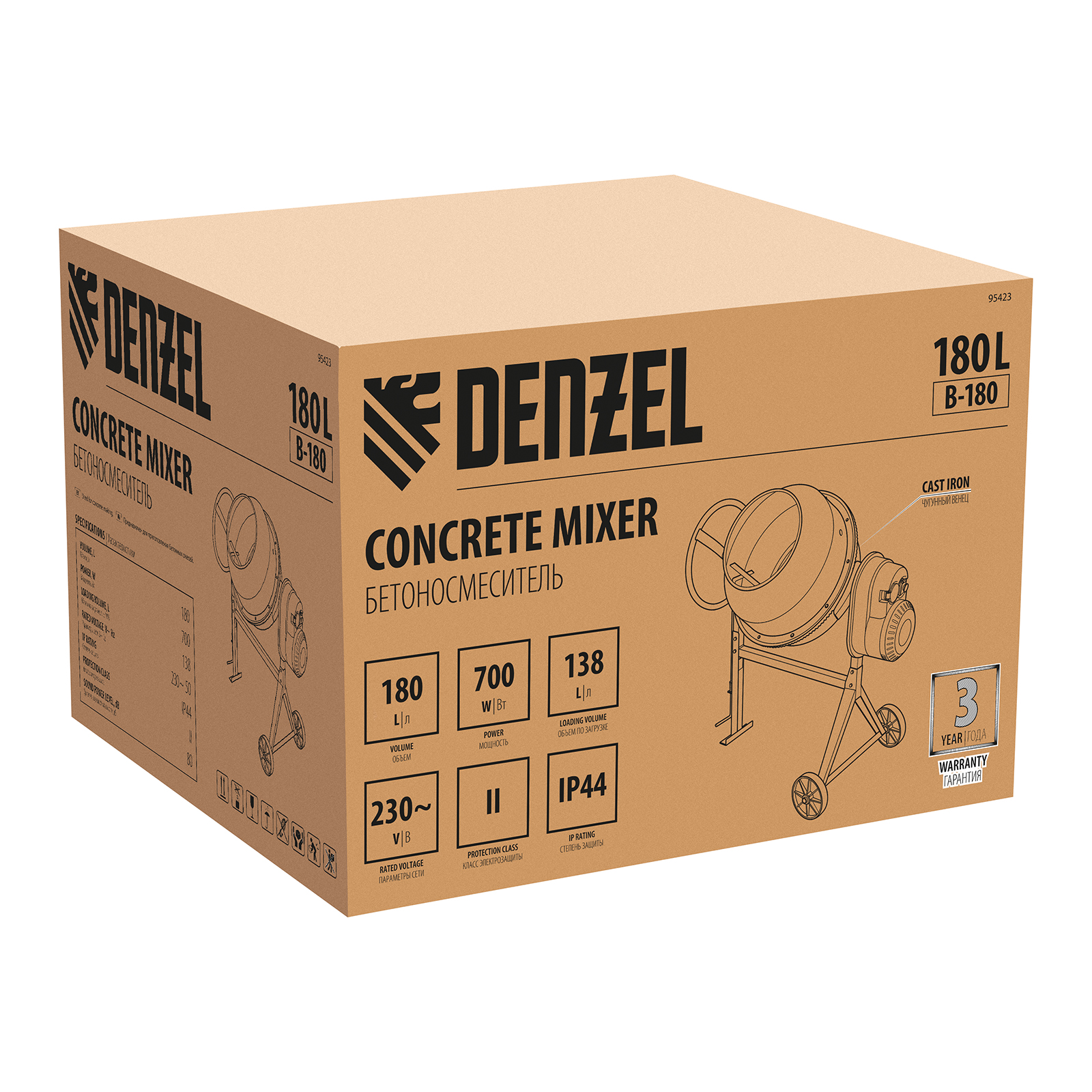 Бетоносмеситель B-180, 700 Вт, 180 л Denzel