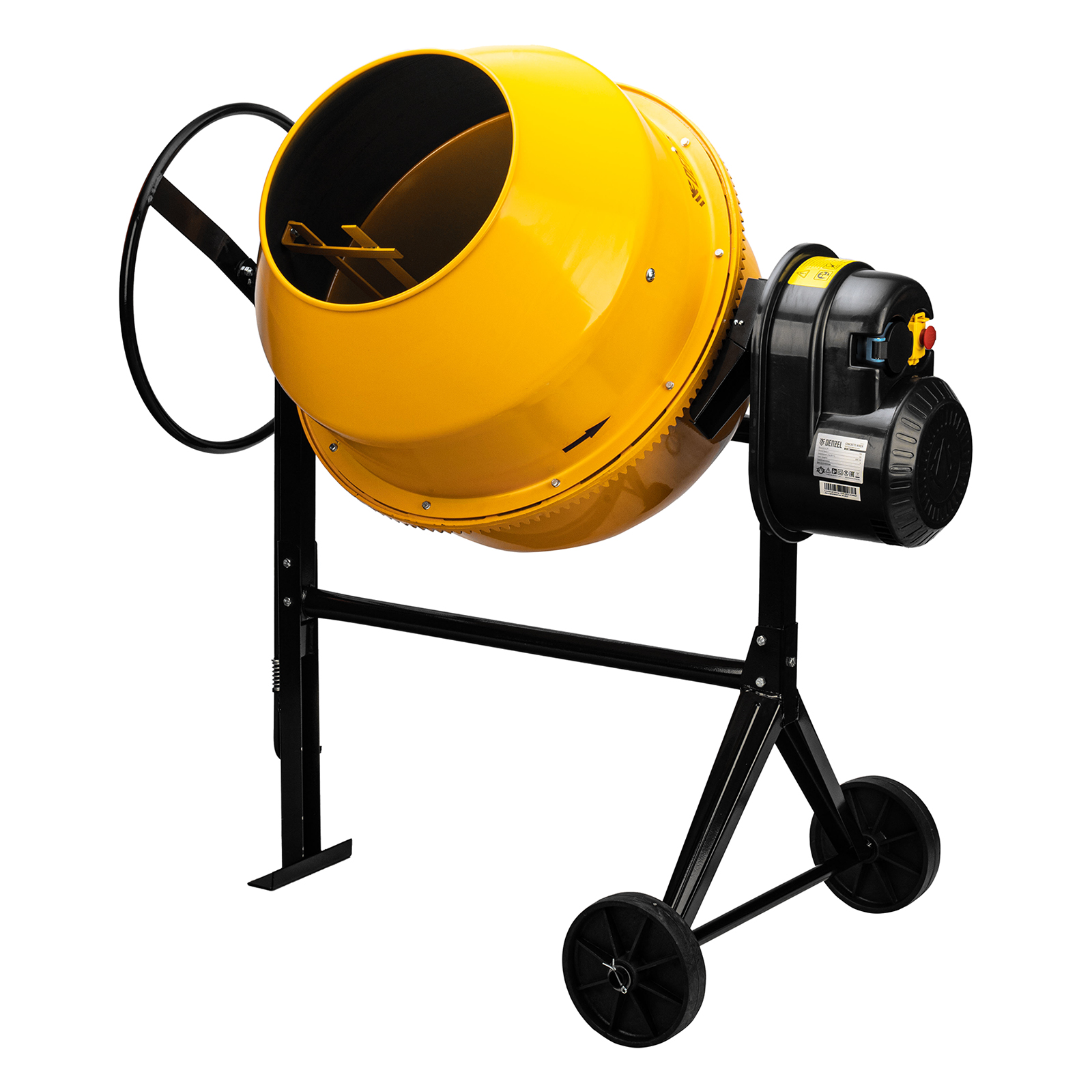 - Удобная транспортировка — колеса упрощают перемещение бетоносмесителя по строительной площадке.