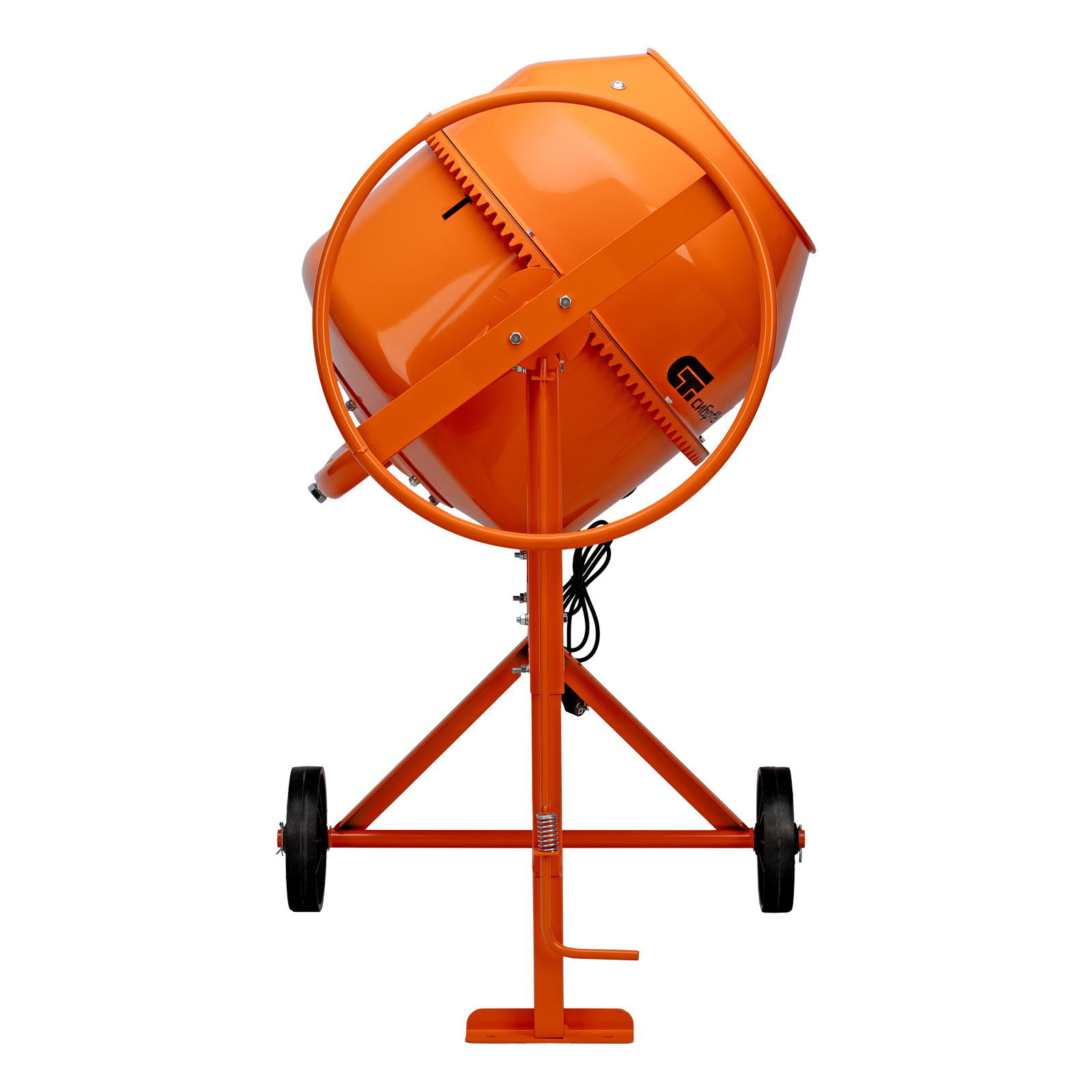 - Мобильность — маневренные колеса из прочного пластика облегчают перемещение бетоносмесителя по неровной земле, что особенно удобно на строительной площадке.
