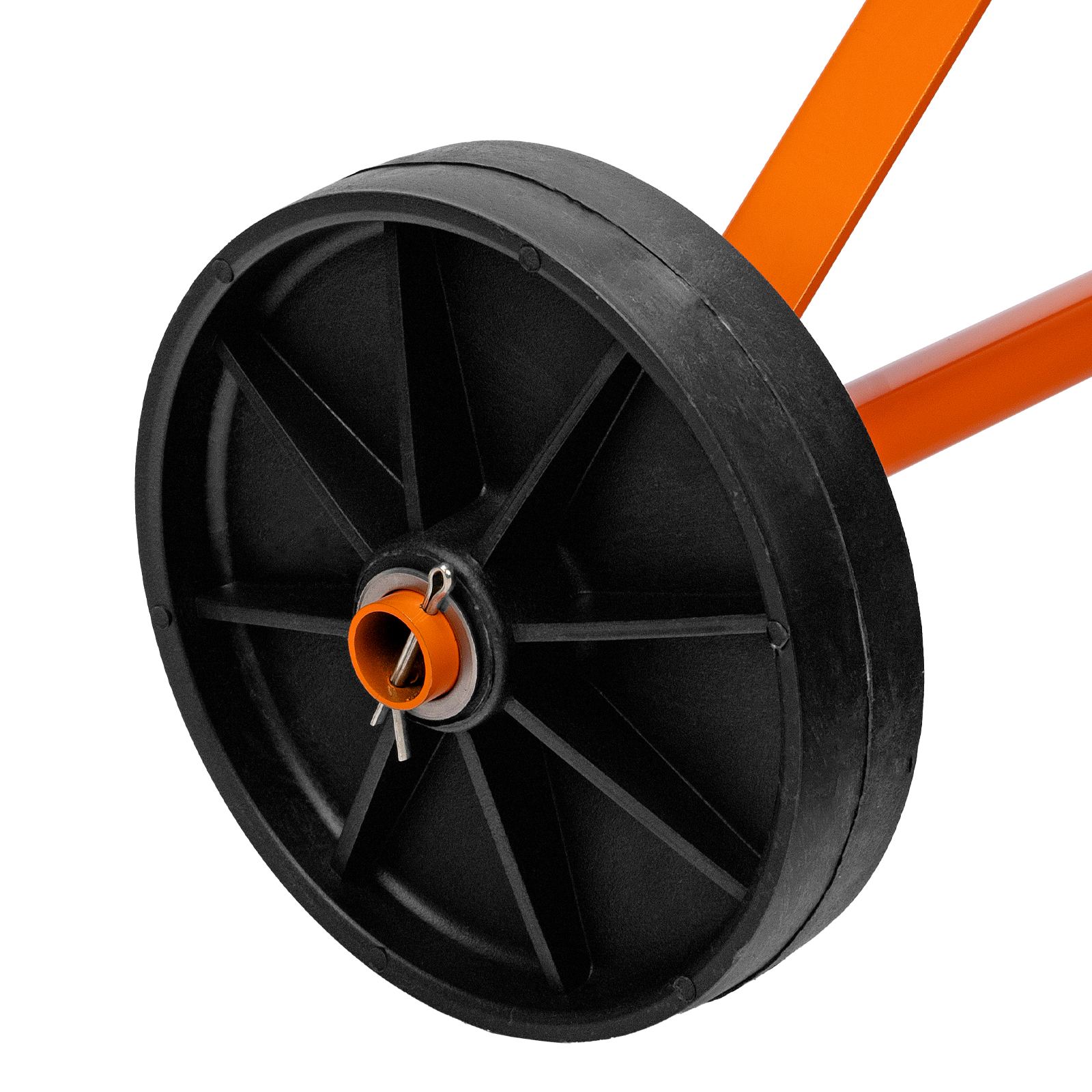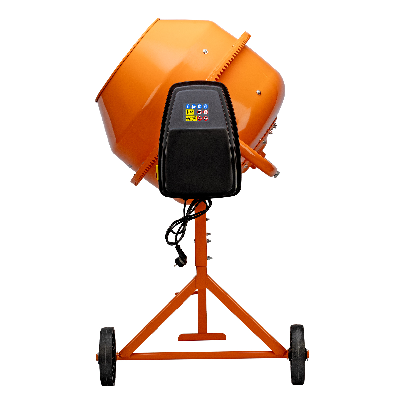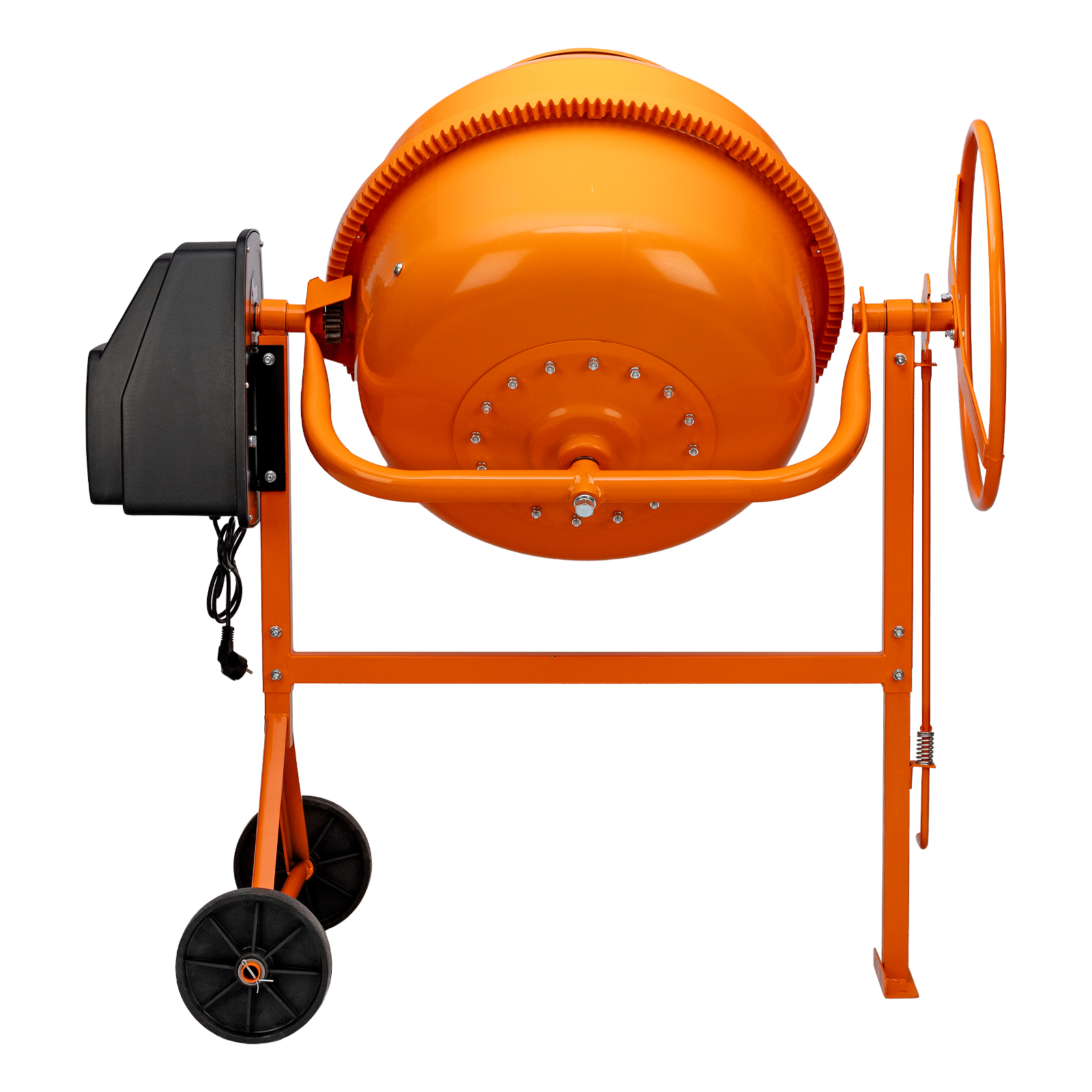 - Мобильность — колеса диаметром 20,5 см позволяют легко перевозить бетоносмеситель даже в условиях стройки.