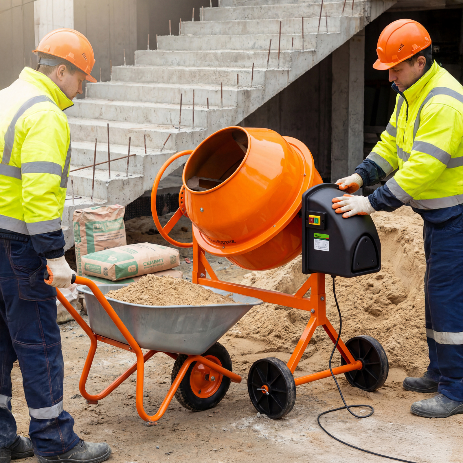 Бетоносмеситель Сибртех БСЛ-63 95469 объемом 63 литра и мощностью 300 Вт применяется при производстве штукатурки для отделки стен, подвижных бетонных растворов для работ с фундаментом и стяжки пола, клеевых смесей для укладки плитки. Малый размер барабана позволяет использовать устройство в небольших помещениях, без труда перемещая его в нужное место. При максимально допустимом заполнении на выходе получится до 40 л готовой смеси. Венец из прочной перфорированной стали выдерживает несколько рабочих циклов с небольшими перерывами, что позволяет ускорить процесс работы.