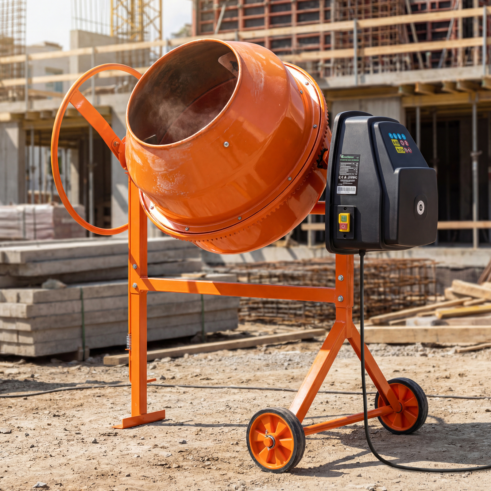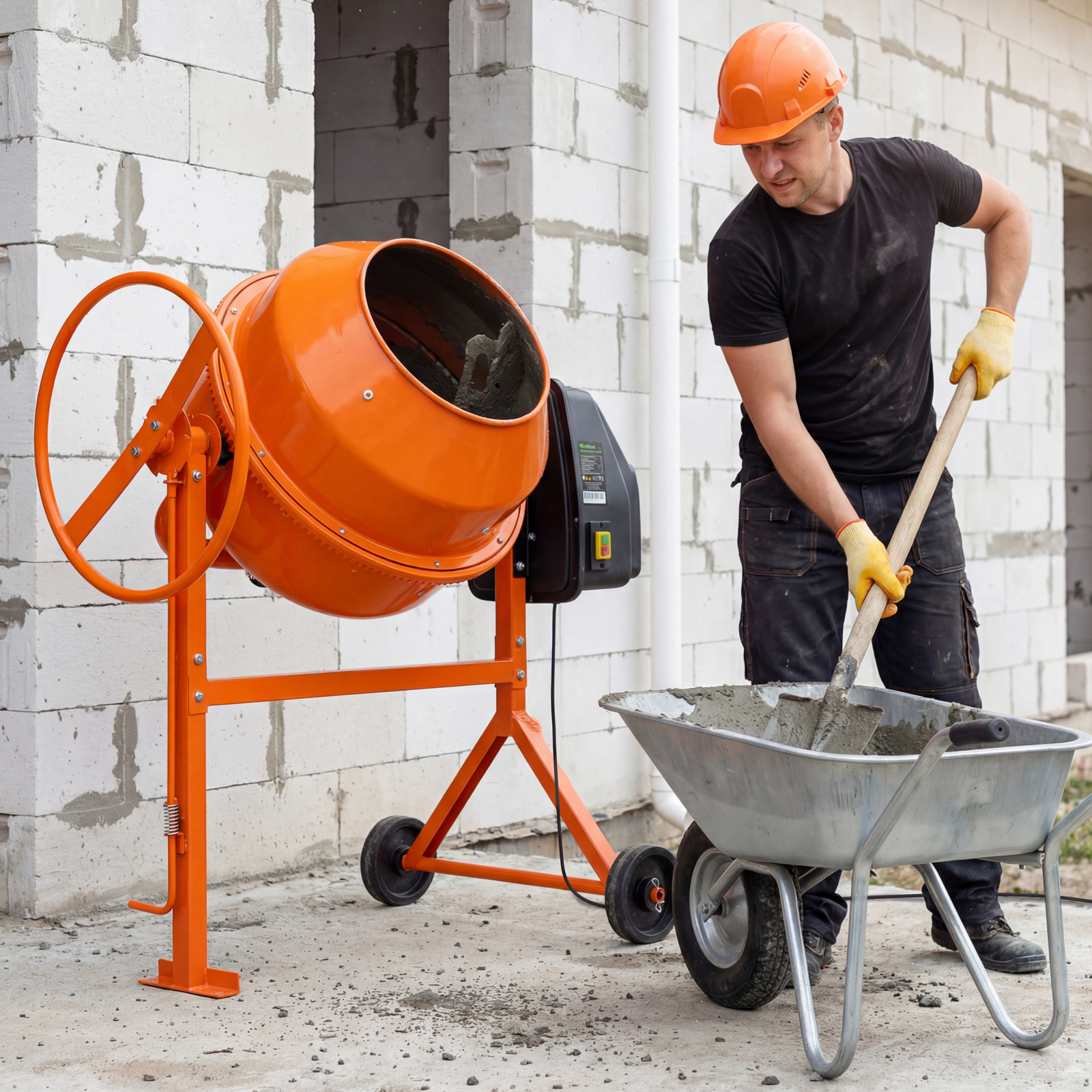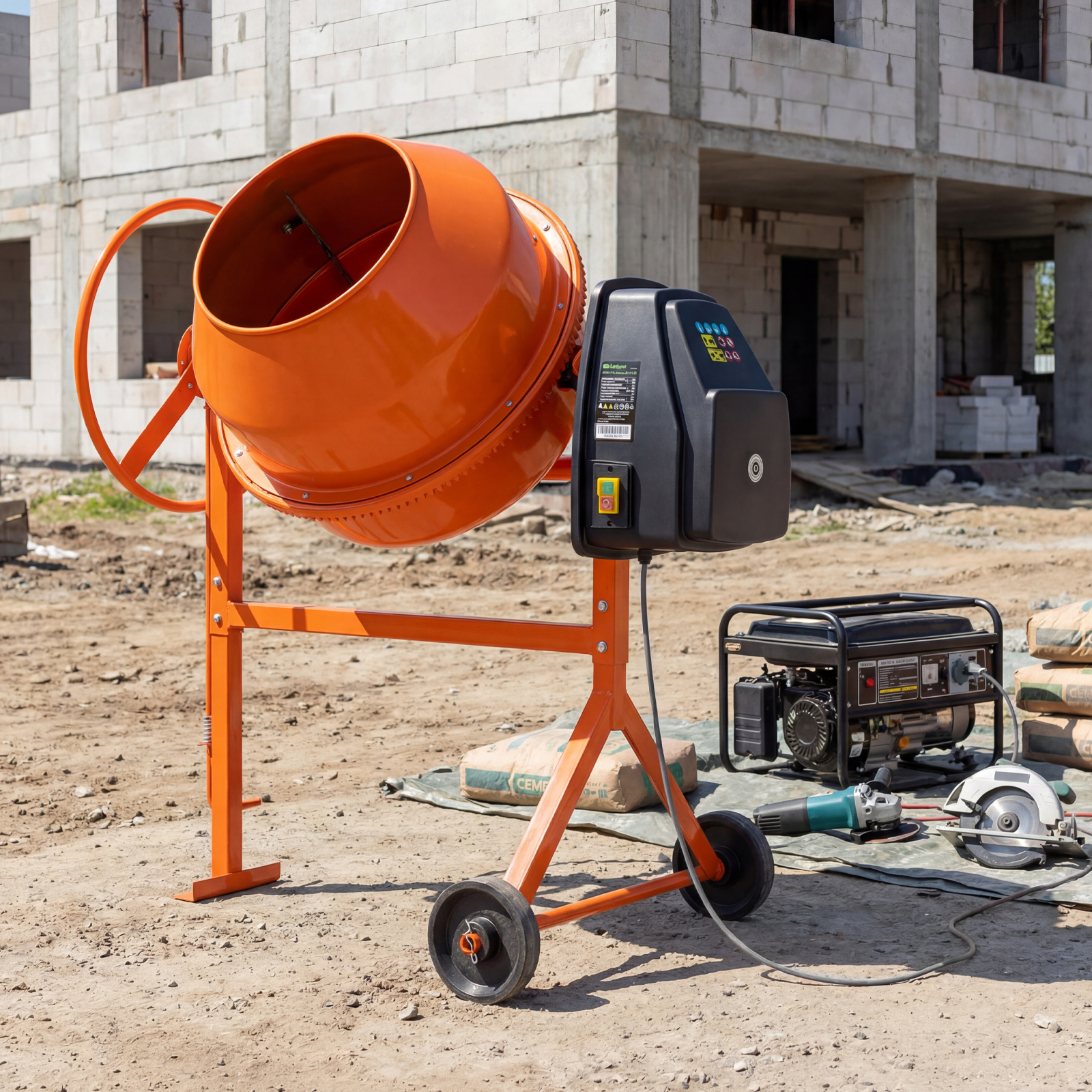 Двигатель мощностью 700 Вт обеспечивает высокую производительность, при этом не создает значительной нагрузки на электросеть. Бетоносмеситель пригодится для проведения строительных работ небольшого объема.