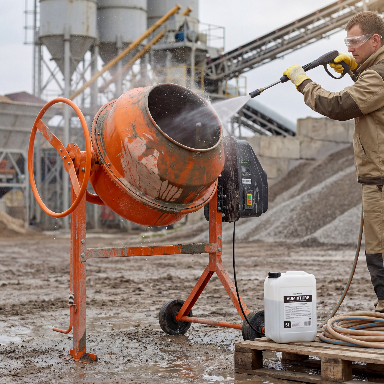 - Мобильность — колеса облегчают перемещение бетоносмесителя по рабочей площадке.