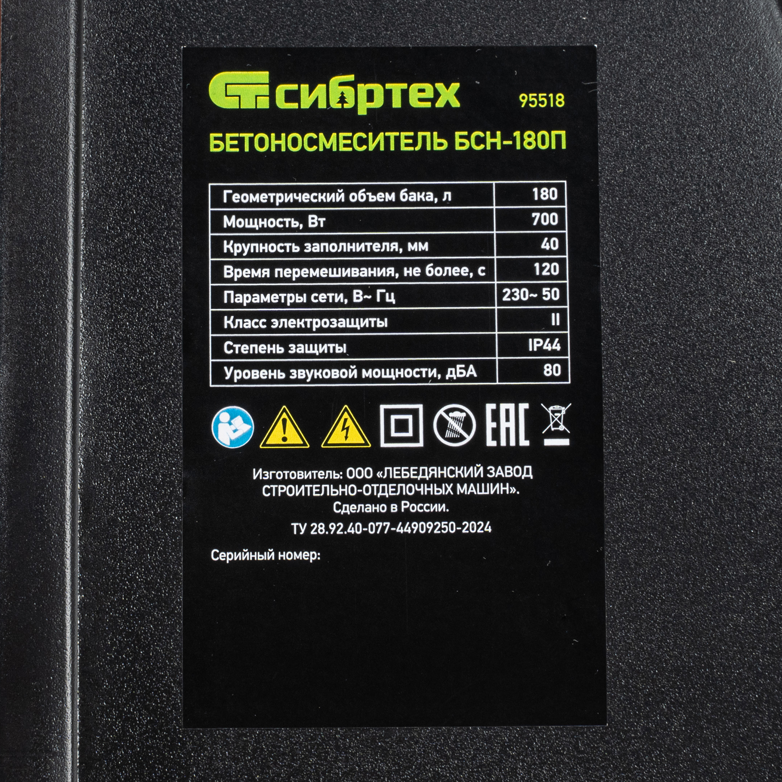 Бетоносмеситель БСН-180П, мощность 700 Вт, полиамидный венец Сибртех в Санкт-Петербурге