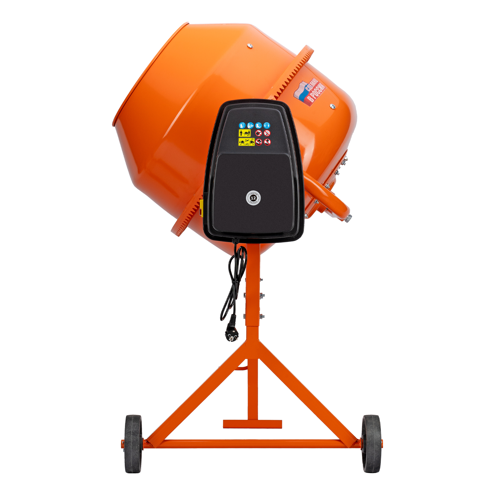 - Электробезопасность — токопроводящие элементы надежно изолированы, бетоносмесителю присвоен класс защиты II.