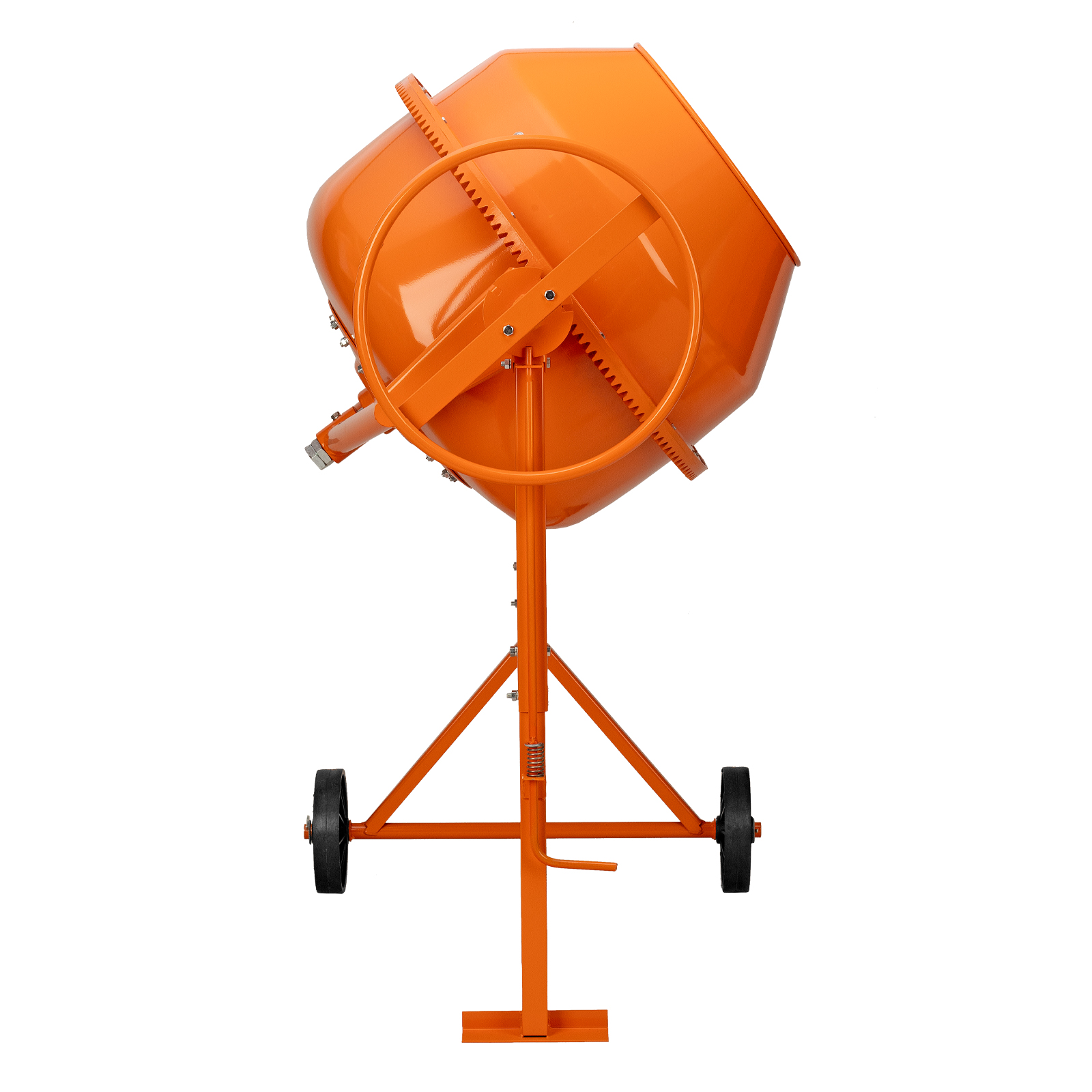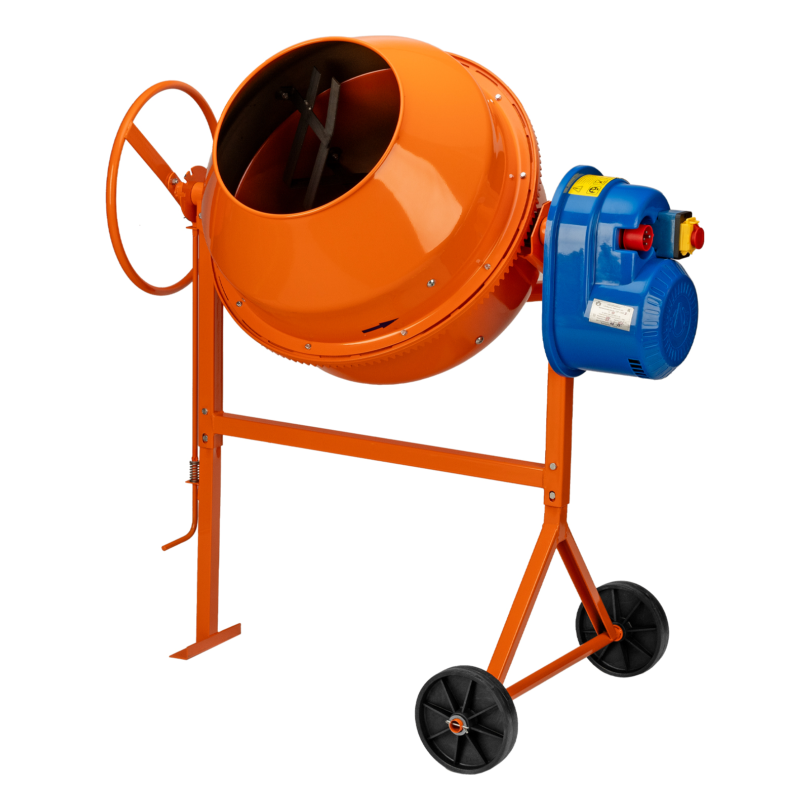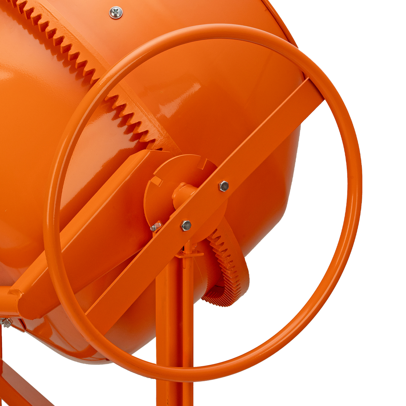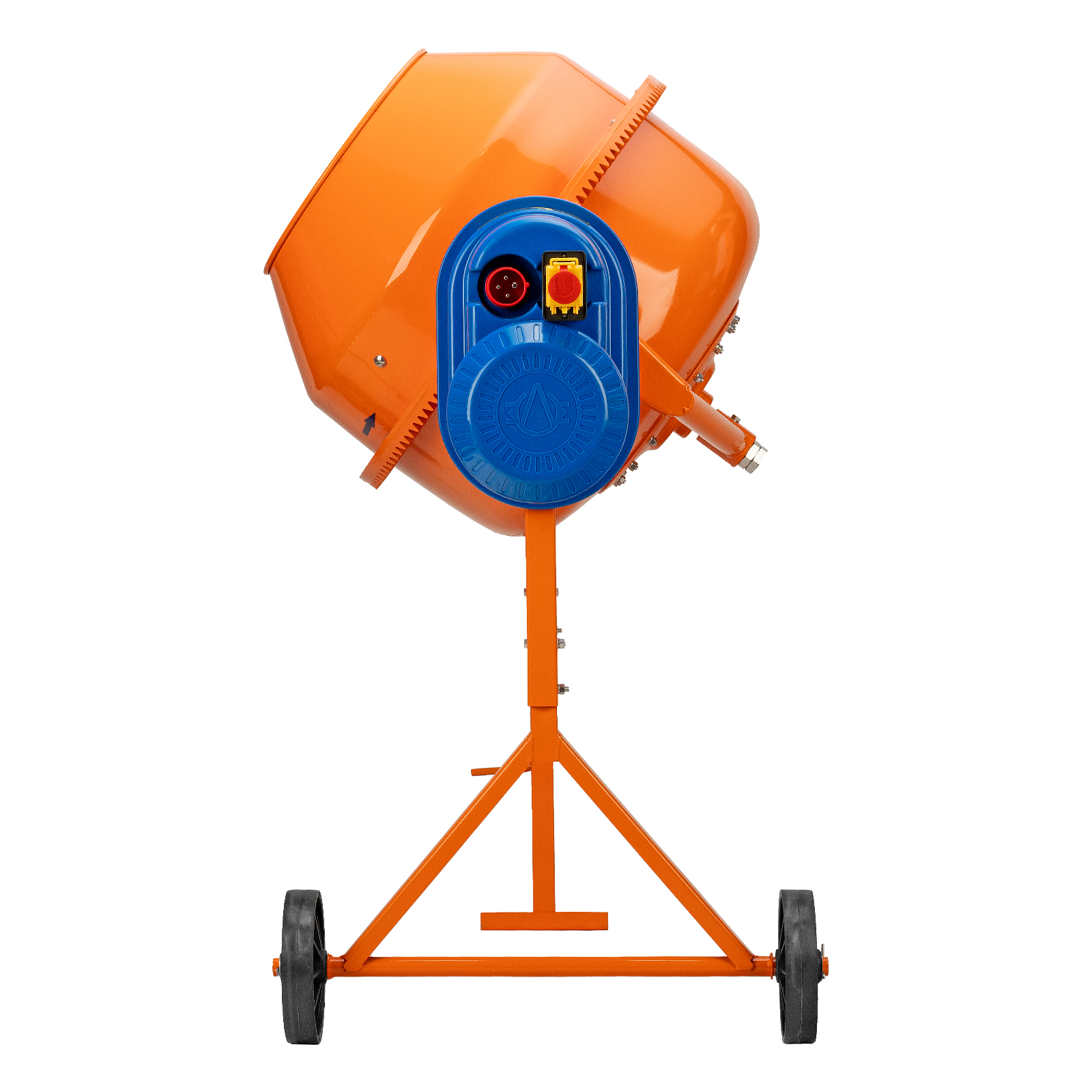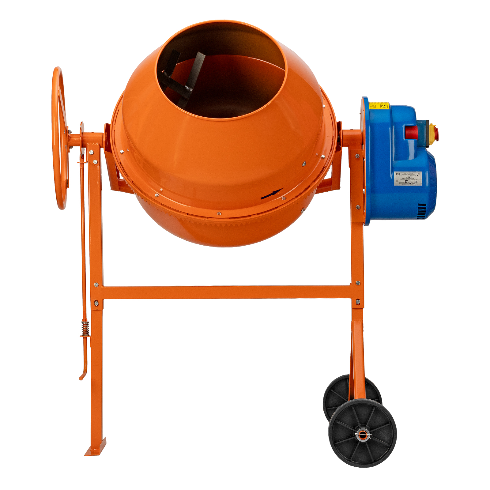- Надежная конструкция — чугунный венец отличается прочностью, усиленная рама обеспечивает устойчивое положение полностью загруженного бетоносмесителя.