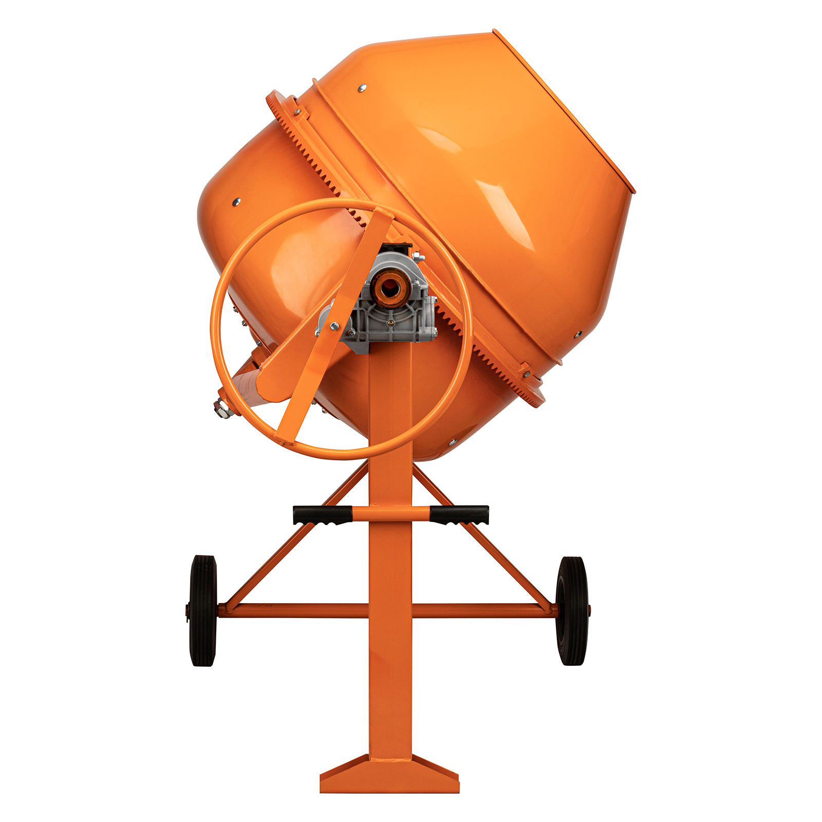 - Простое управление — удобный механизм опрокидывания и фиксации наклона барабана упрощает загрузку, перемешивание и выгрузку смеси.