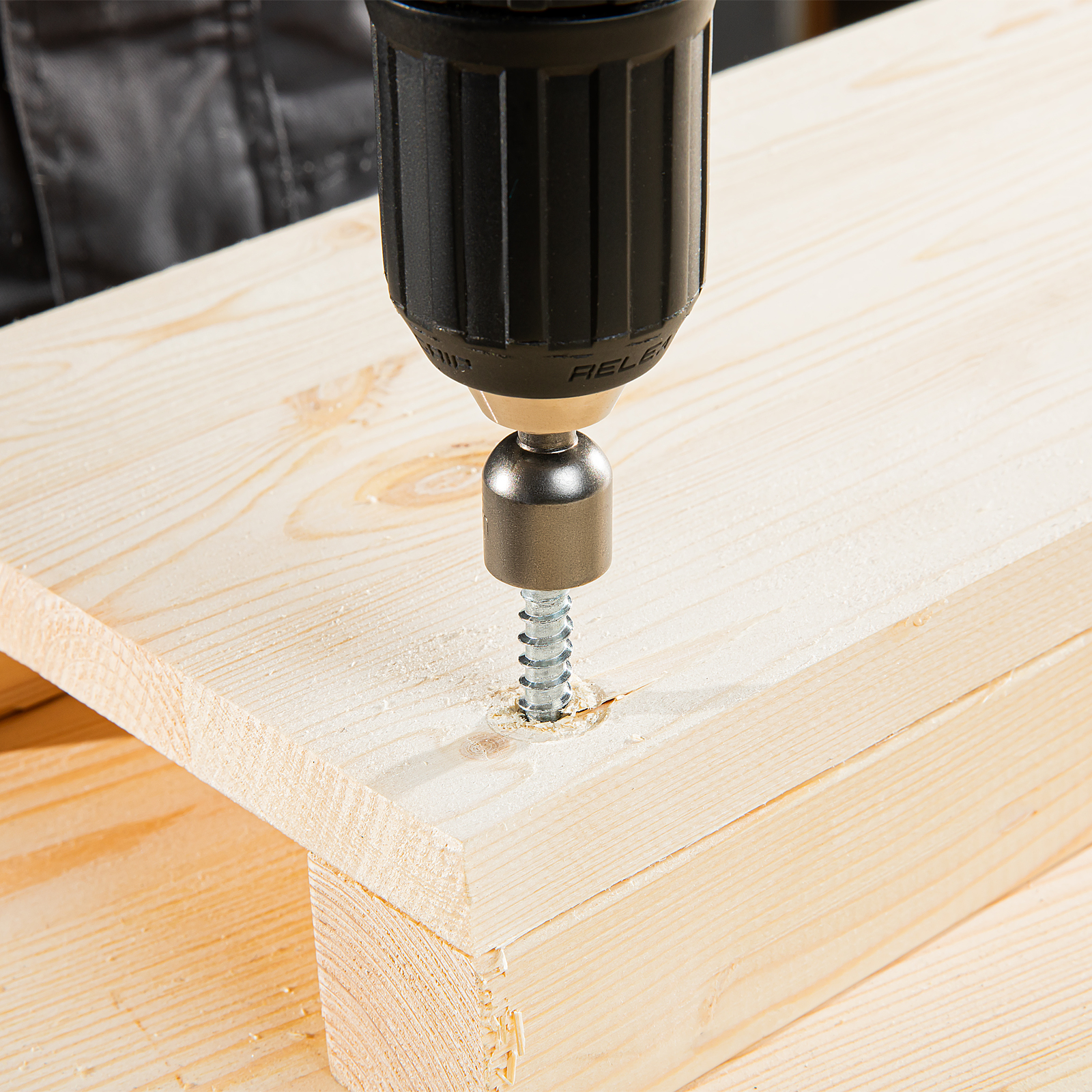 - Встроенный магнит — оснастка надежно соединяется с головкой крепежа.