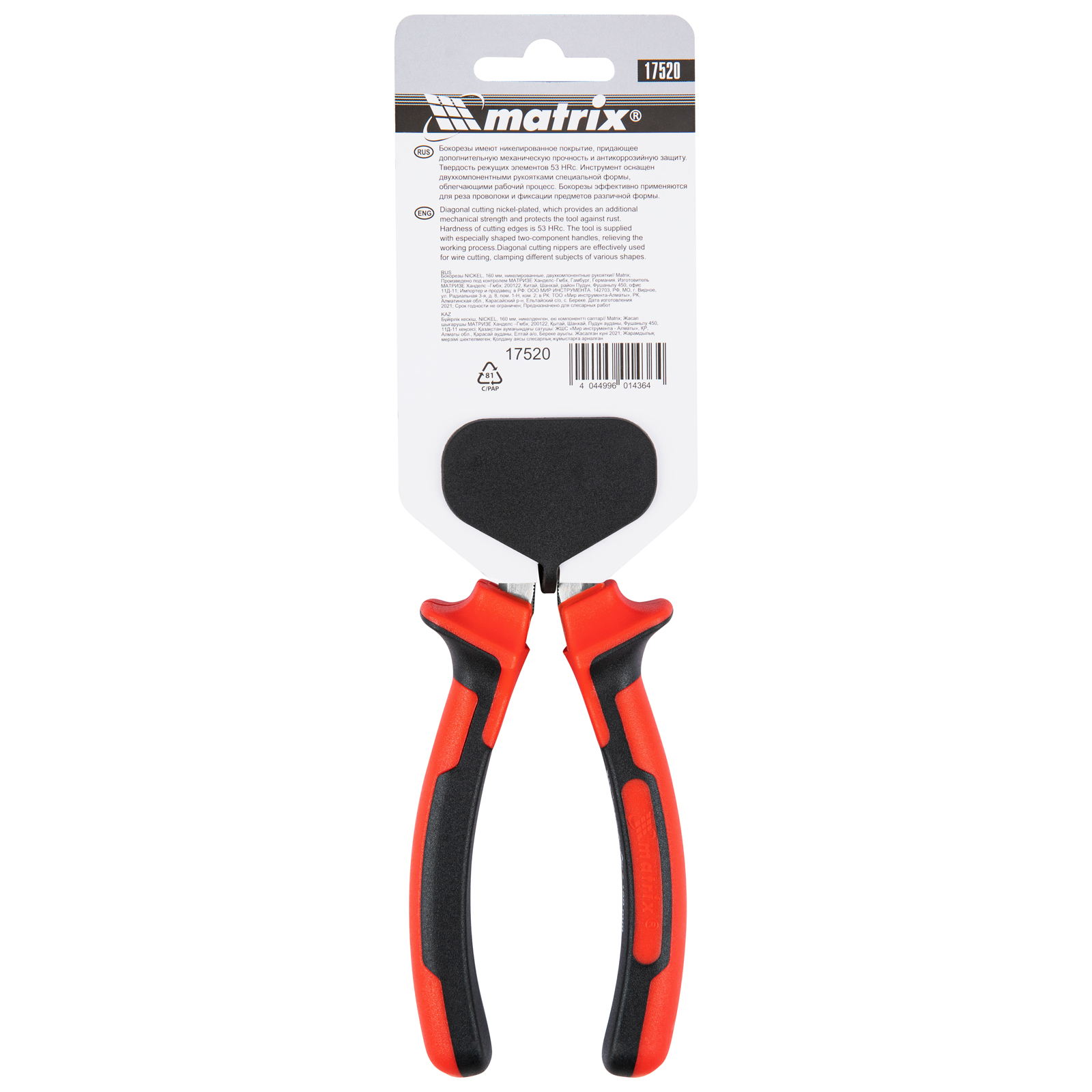 Никелированные бокорезы Matrix NICKEL 17520 длиной 160 мм, с двухкомпонентными рукоятками, используются для перекусывания проводов и проволоки. Пригодятся частным мастерам и профессионалам для проведения монтажных, строительных и слесарных работ.