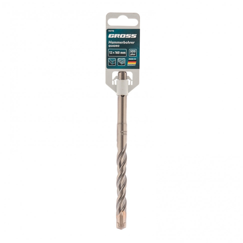 Бур по бетону Gross QUADRO 70770 размером 12 х 160 мм устанавливается в перфораторы с патроном SDS PLUS. Он рассчитан на профессиональное применение, выдерживает высокие нагрузки и справляется с бурением кирпича, камня, армированного бетона. Применяется при проведении ремонтных, строительных, монтажных/демонтажных работ.