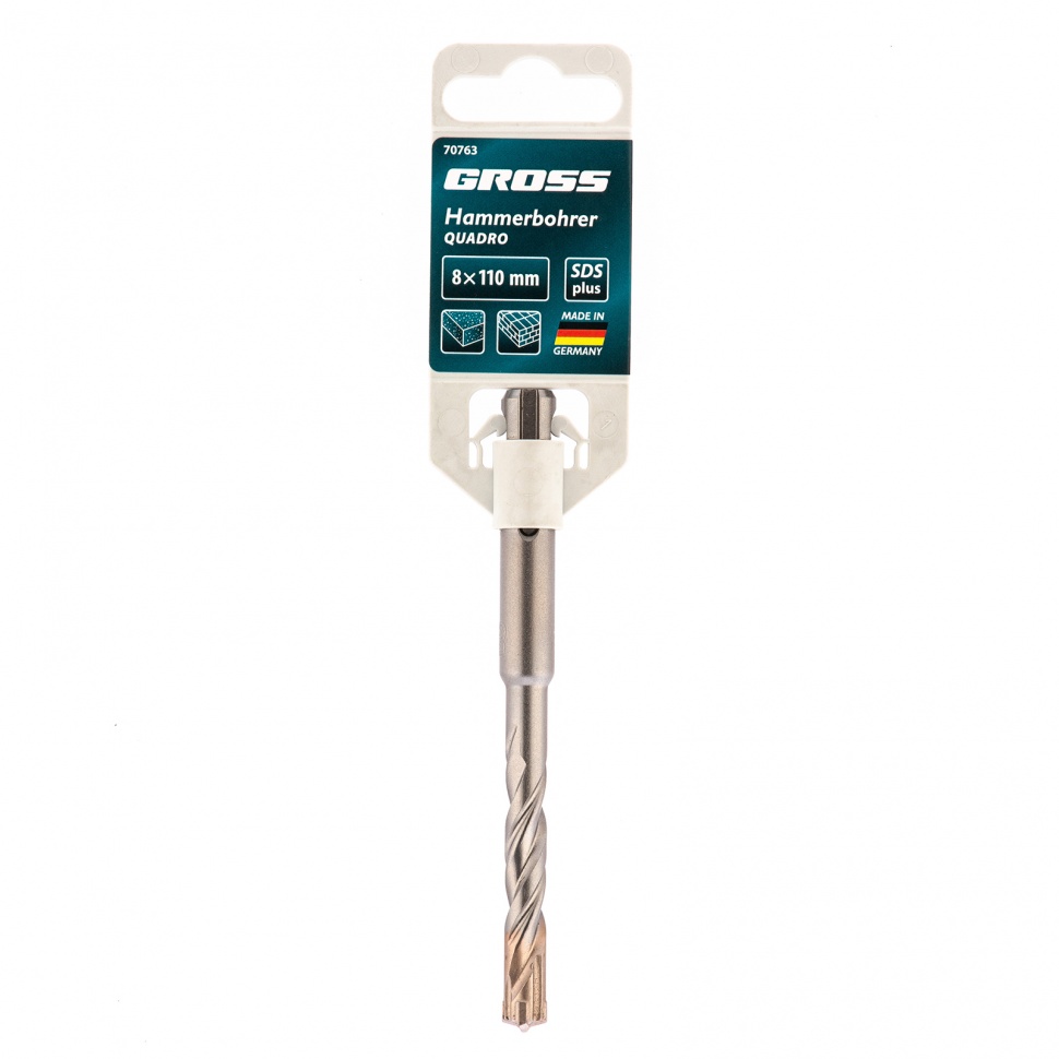 Бур по бетону Gross QUADRO 70763 размером 8 х 110 мм устанавливается в перфораторы с патроном SDS PLUS. Он рассчитан на профессиональное применение, выдерживает высокие нагрузки и справляется с бурением кирпича, камня, армированного бетона. Применяется при проведении ремонтных, строительных, монтажных/демонтажных работ.