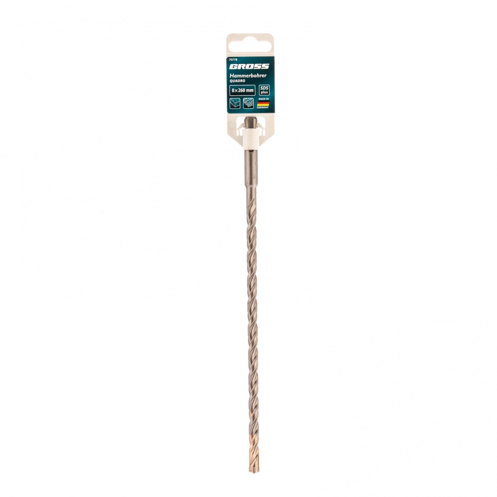 Бур по бетону Gross QUADRO 70778 размером 8 х 260 мм устанавливается в перфораторы с патроном SDS PLUS. Он рассчитан на профессиональное применение, выдерживает высокие нагрузки и справляется с бурением кирпича, камня, армированного бетона. Применяется при проведении ремонтных, строительных, монтажных/демонтажных работ.