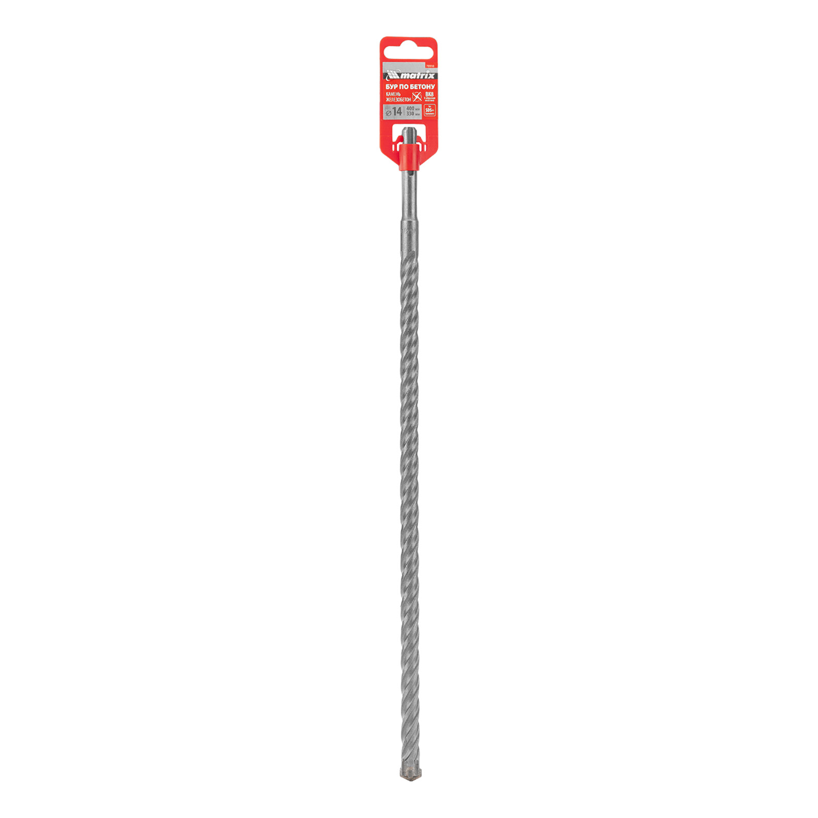 Бур по бетону Matrix 70910 длиной 400 мм, с хвостовиком SDS-plus и крестовой пластиной, предназначен для получения отверстий диаметром 14 мм в бетоне, камне и кирпиче. Крестовая пластина обеспечивает эффективную работу с твердыми материалами, в том числе армированным бетоном. Бур устанавливается в патрон перфоратора и используется во время проведения строительных работ.