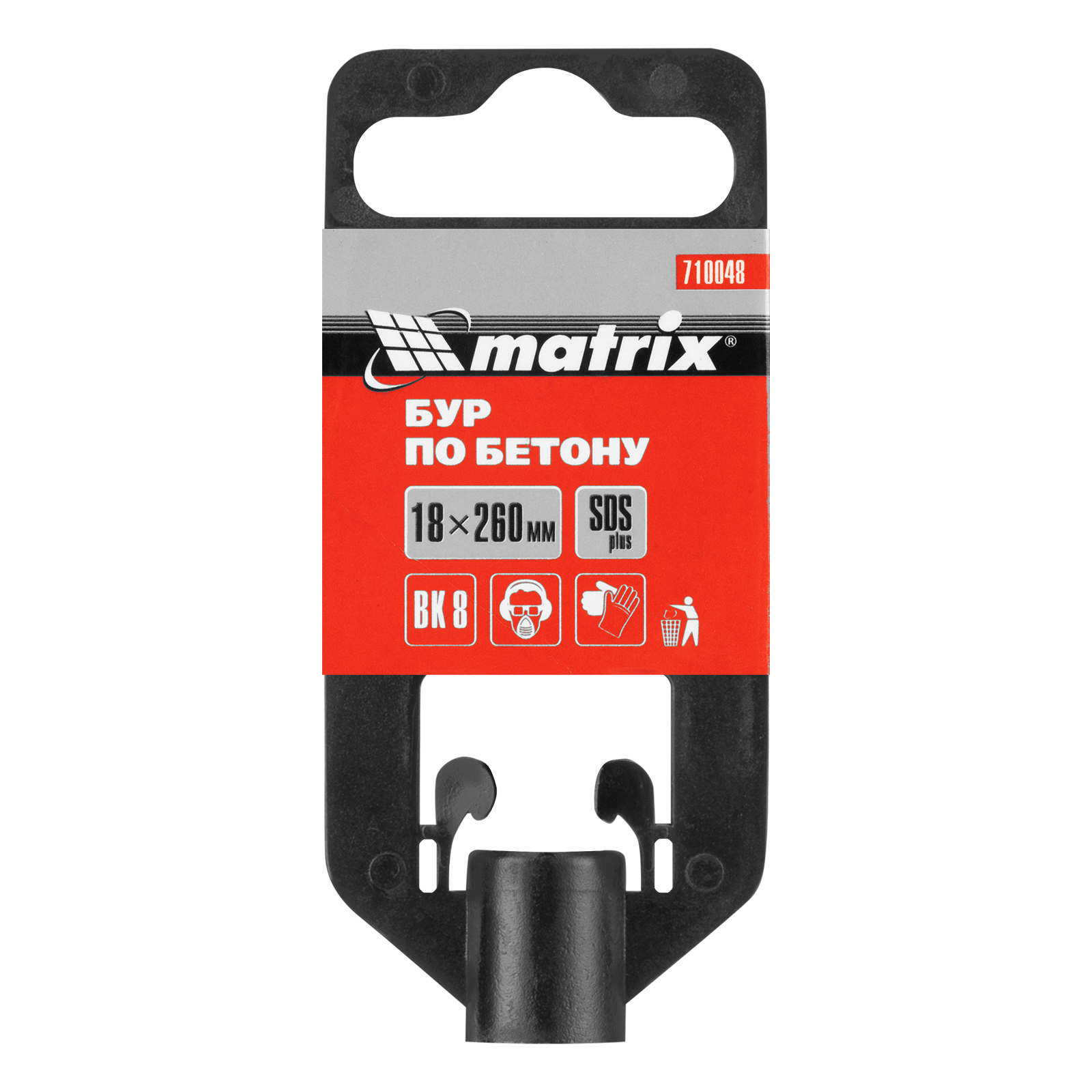 Бур по бетону Matrix 710048 длиной 260 мм, с хвостовиком SDS-plus, предназначен для установки на перфоратор и получения отверстий диаметром 18 мм в бетоне, камне и кирпиче. Позволяет эффективно решать поставленные задачи благодаря режущей пластине из высокотвердого сплава карбида вольфрама ВК8 твердостью 80-90 HRC.