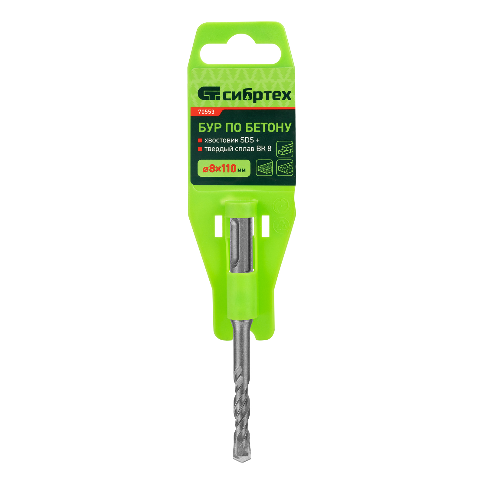 Бур по бетону Сибртех 70553 размером 8 х 110 мм предназначен для перфораторов с хвостовиком типа SDS Plus. Способен сверлить отверстия в материалах из бетона и кирпича, а также в искусственном и природном камне. Бур отлично подойдет для домашнего использования со средним объемом работ.