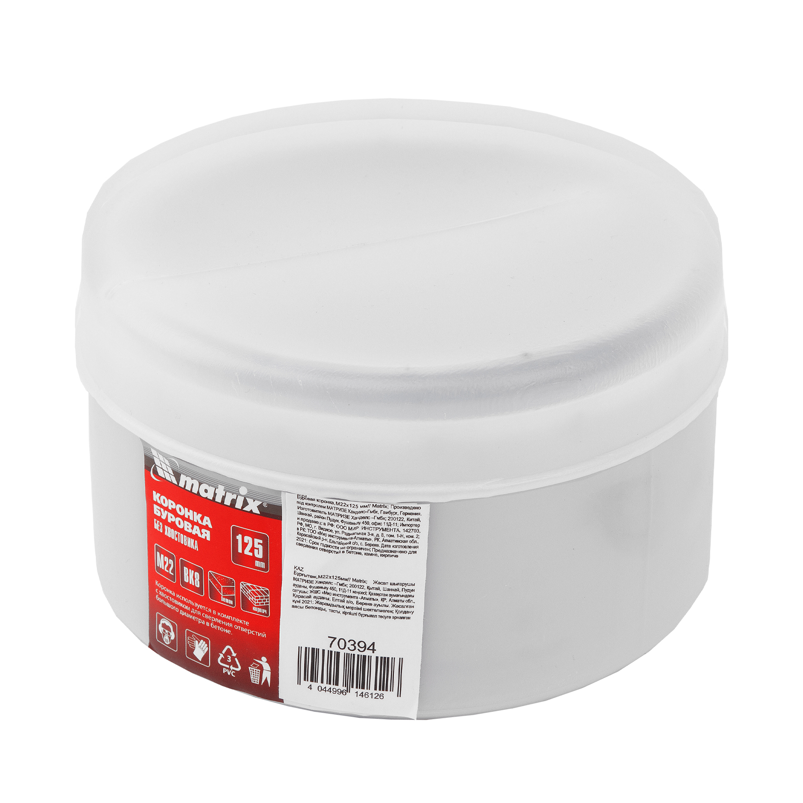 Буровая коронка M22 х 125 мм Matrix 70394 рассчитана на сверление отверстий в бетоне, кирпиче, граните, природном и искусственном камне. Устанавливается на ударные дрели или перфораторы с патронами под хвостовик SDS-Plus или SDS-Max. Коронка позволяет получить большие отверстия, поэтому пригодится для монтажа розеток, выключателей и прокладки труб.