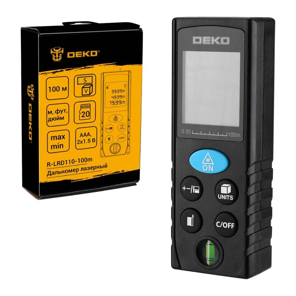 Дальномер лазерный DEKO R-LRD110-100m предназначен для проведения точных измерительных работ (измерение расстояния, площади и объема).Технические характеристики:Диапазон измерения: 100 мТочность измерения (стандартное отклонение): ± 2 ммЕдиницы измерения: м, фут, дюймЕдиницы измерения площади: м2, фут2Единицы измерения объёма: м3, фут3Тип лазера: 620~690 НмКласс лазера: IIПамять устройства: 20 записейВремя автоматического отключения лазера: 30 сАвтоматическое отключение прибора: 180 сРабочая температура: От 0°C до + 40°C Температура хранения: От -20°C до + 65 °CТип питания: AAA (щелочные), 2x1,5 В (не входят в комплект)Упаковка: коробкаКомплектация:Дальномер лазерный - 1 штРуководство по эксплуатации - 1 шт