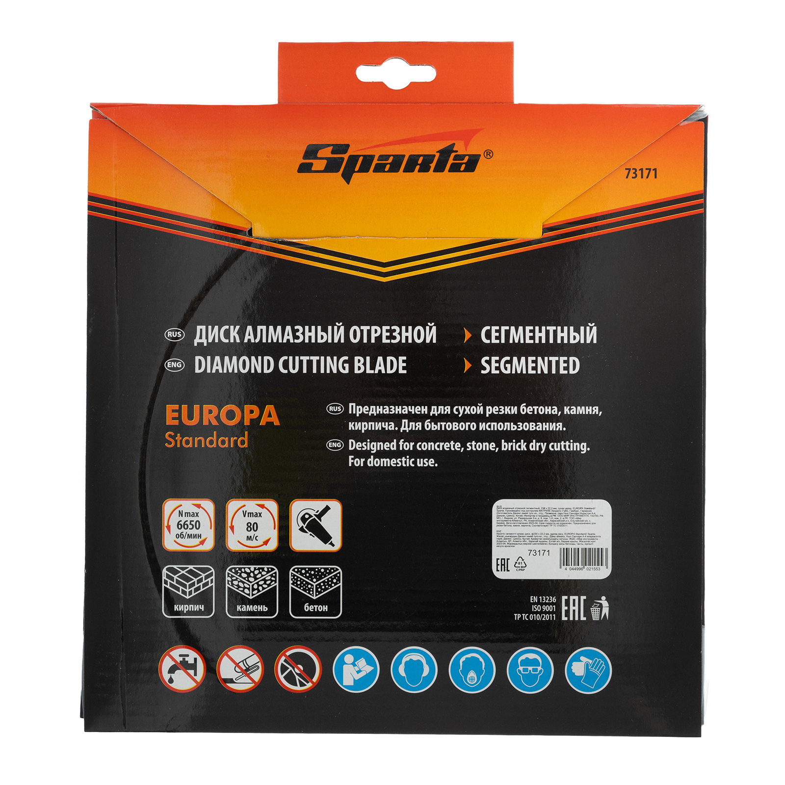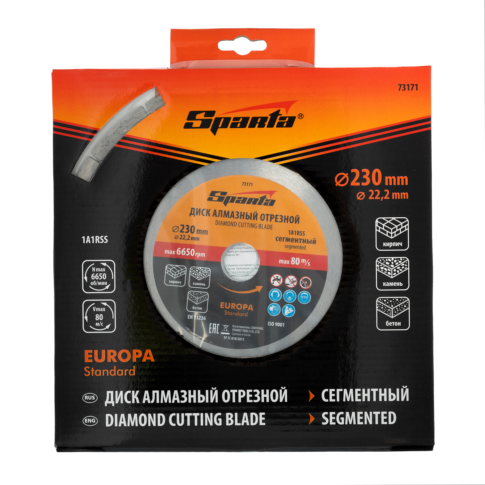 Диск алмазный отрезной сегментный Sparta EUROPA Standart 73171 диаметром 230 х 22,2 мм предназначен для сухой резки бетона, в том числе свежего, камня, кирпича, шлакоблока и тротуарной плитки. Он устанавливается на углошлифовальные машины с посадочным диаметром 22,2 мм. Диск оптимально подходит для бытового использования.
