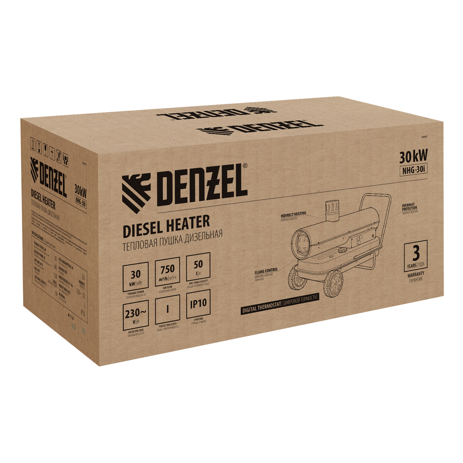 Дизельная тепловая пушка NHG-30i, 30 кВт, 750 м3/ч, непрямой нагрев, цифровой термостат Denzel в Санкт-Петербурге