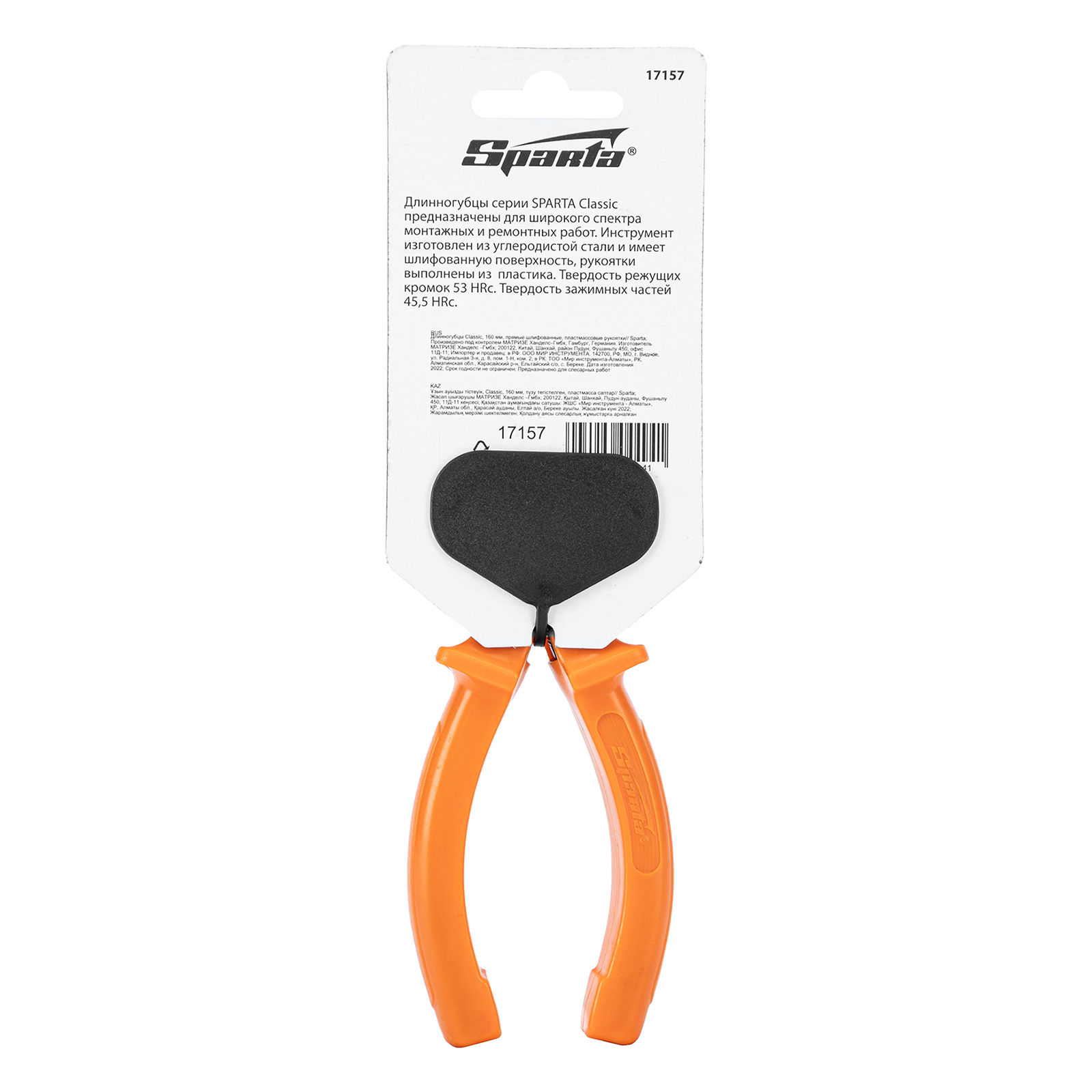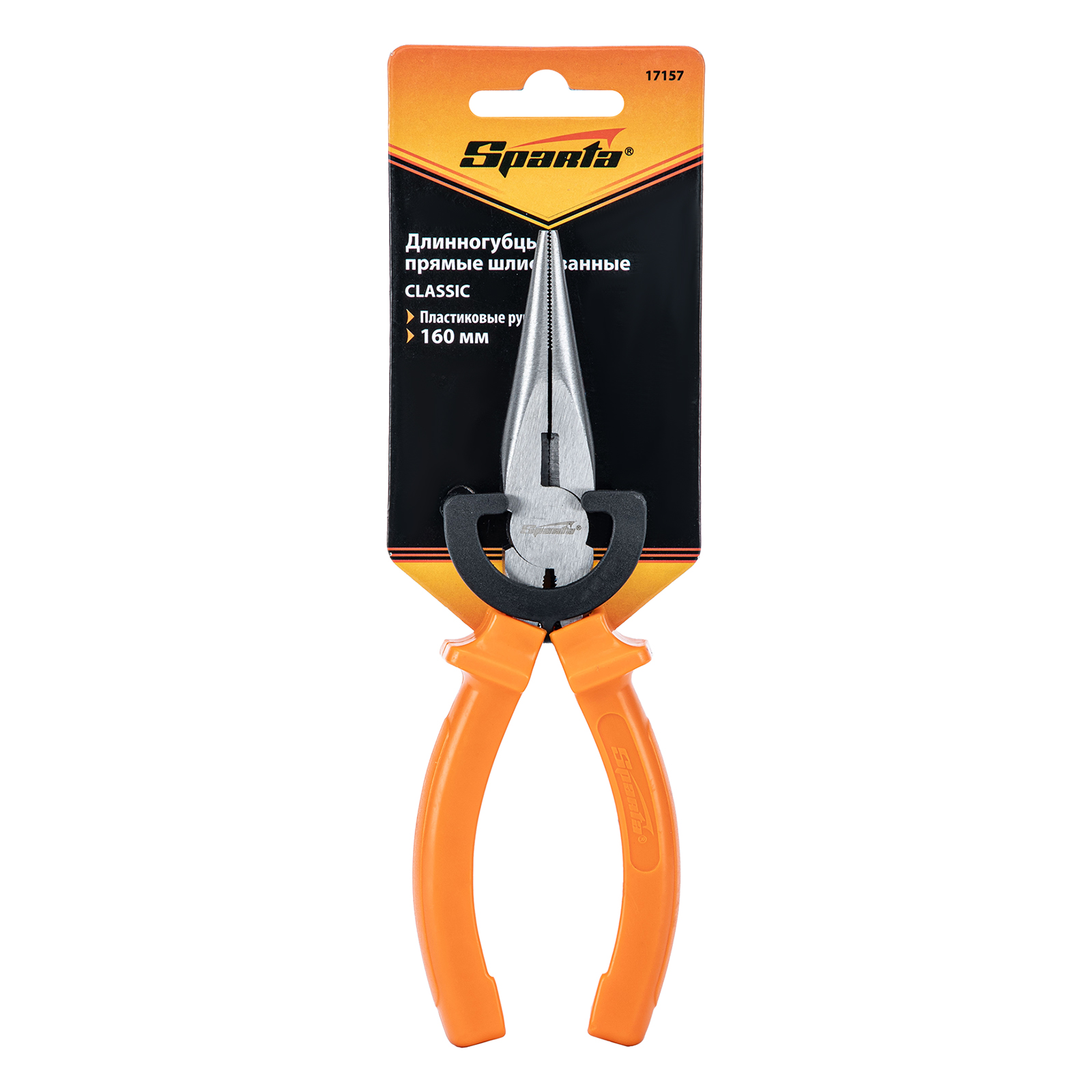 Длинногубцы прямые Classic, 160 мм, шлифованные, пластмассовые рукоятки Sparta