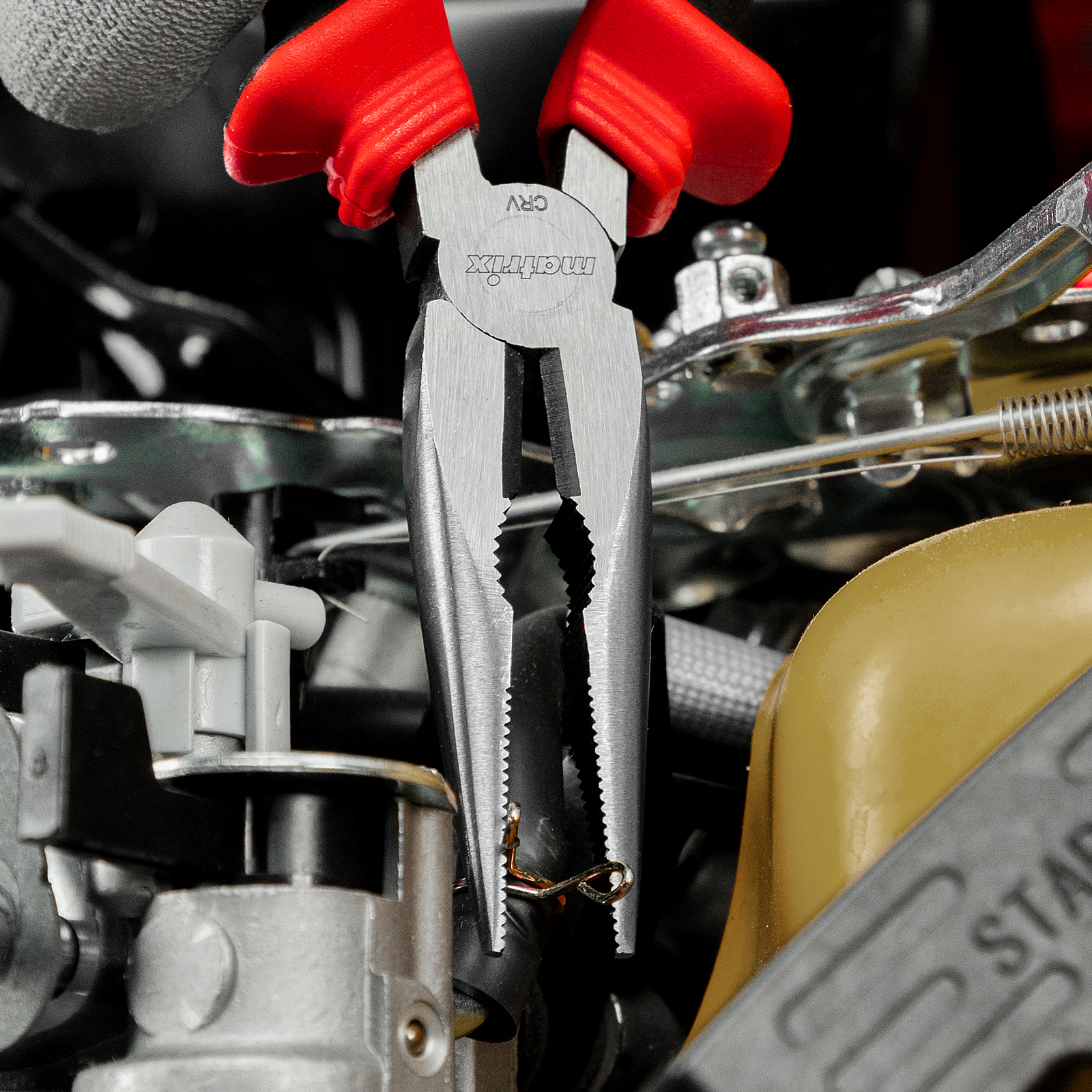 - Прочность и долговечность — длинногубцы изготовлены из стали 40 CrV, рабочие части прошли индукционную закалку до твердости 52-58 HRC.
