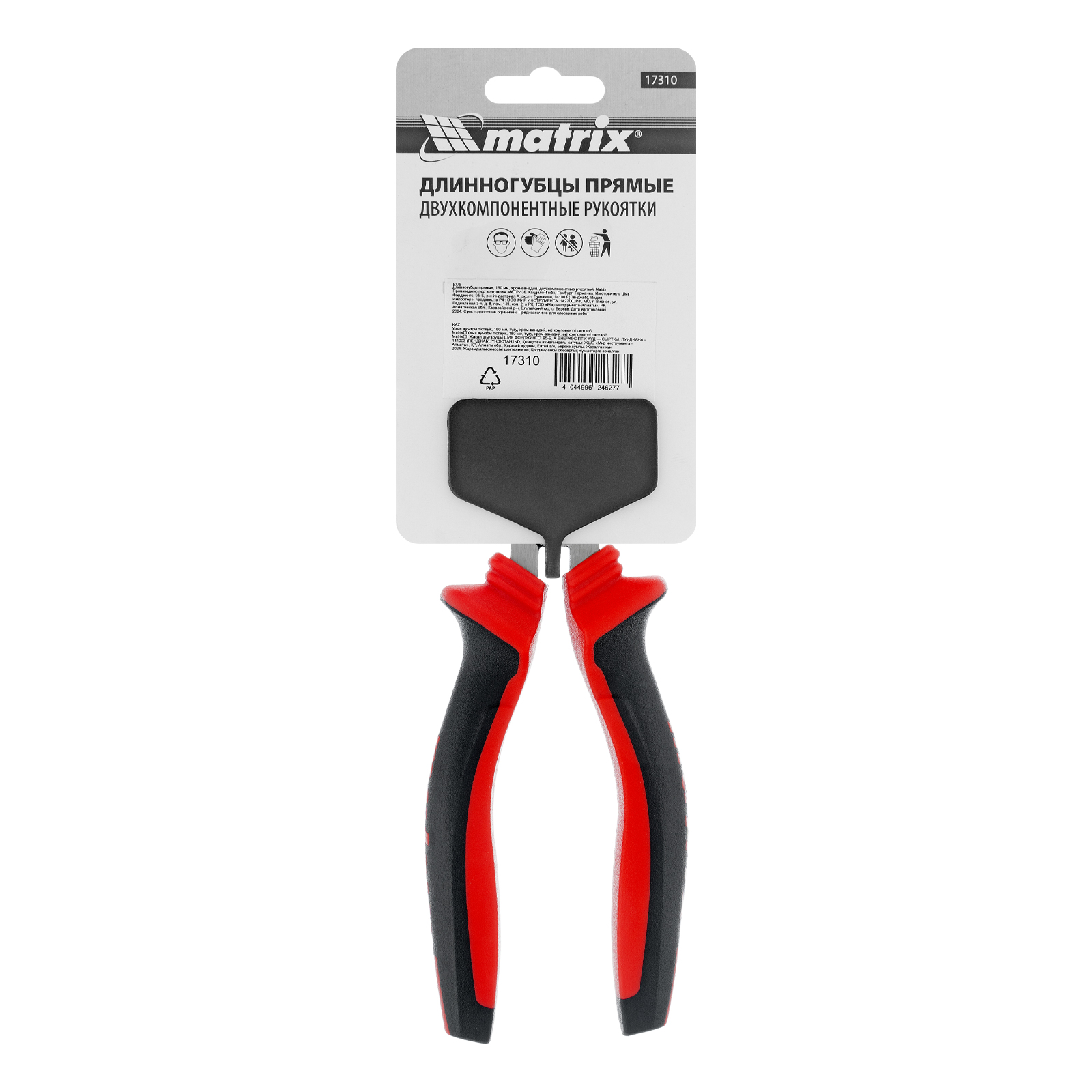 Длинногубцы прямые, 180 мм, хром-ванадий, двухкомпонентные рукоятки Matrix в Санкт-Петербурге
