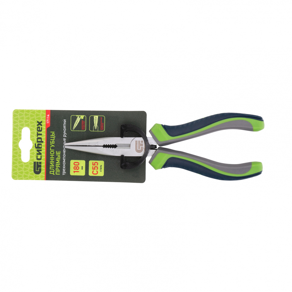 Длинногубцы прямые, 180 мм, трехкомпонентные рукоятки Сибртех в Санкт-Петербурге