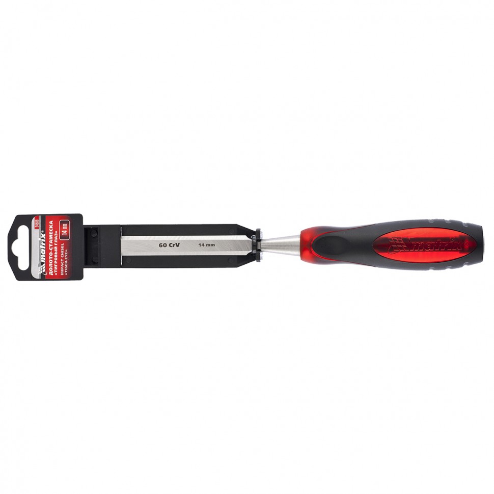 Долото-стамеска Matrix «Тигровый глаз» 24509 с полотном шириной 14 мм и двухкомпонентной обрезиненной рукояткой используется в столярном и плотницком деле, в производстве мебели. Позволяет вырезать углубления, формировать пазы, зачищать шипы и гнезда, снимать фаски. Инструмент выдерживает удары киянкой или молотком, т. к. металлический затыльник защищает его от деформации. Долото относится к профессиональному ручному инструменту, но может применяться и в домашних условиях.