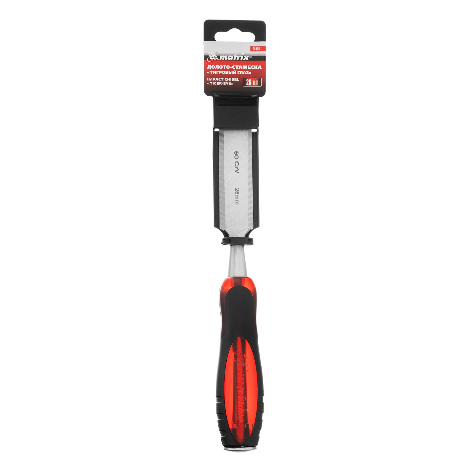 Долото-стамеска Matrix «Тигровый глаз» 24518 с полотном шириной 26 мм и двухкомпонентной обрезиненной рукояткой используется в столярном и плотницком деле, в производстве мебели. Позволяет вырезать углубления, формировать пазы, зачищать шипы и гнезда, снимать фаски. Инструмент выдерживает удары киянкой или молотком, т. к. металлический затыльник защищает его от деформации. Долото относится к профессиональному ручному инструменту, но может применяться и в домашних условиях.