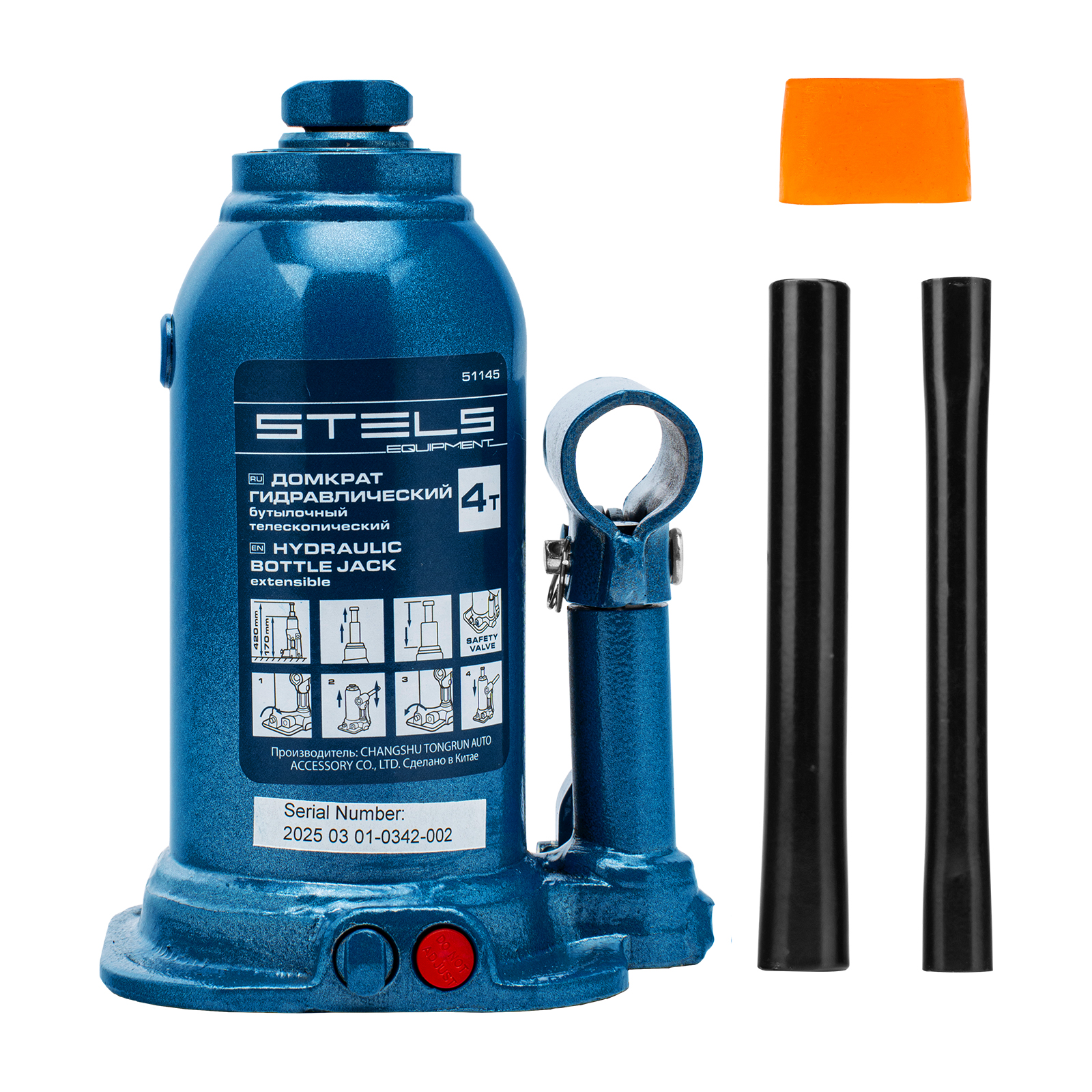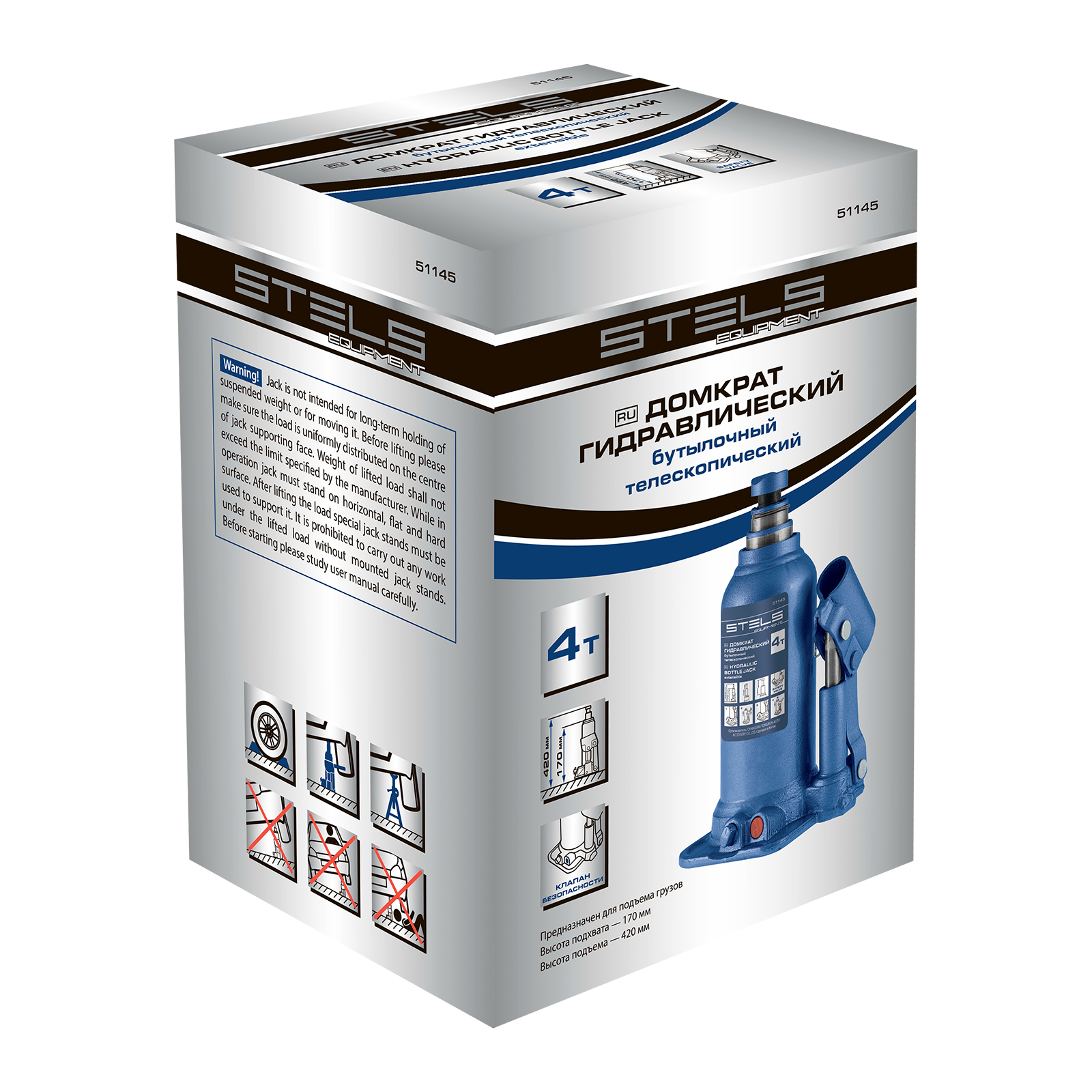 Гидравлический бутылочный телескопический домкрат Stels 51145 используется для поднятия грузов весом до 4 т с на высоту 170-420 мм. Не требует больших усилий и оптимален для автомобилей с большим клиренсом. Домкрат можно использовать в гараже для самостоятельного ремонта машины или в автосервисе для решения профессиональных задач.