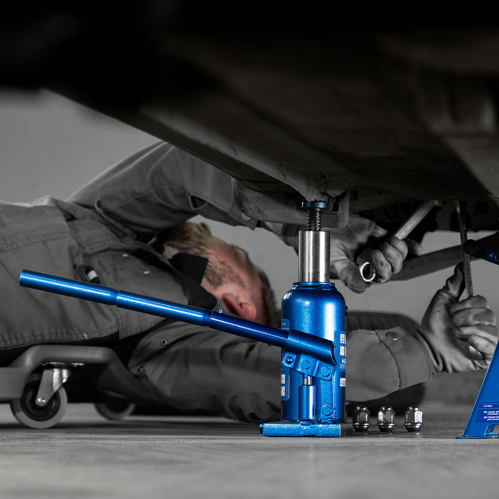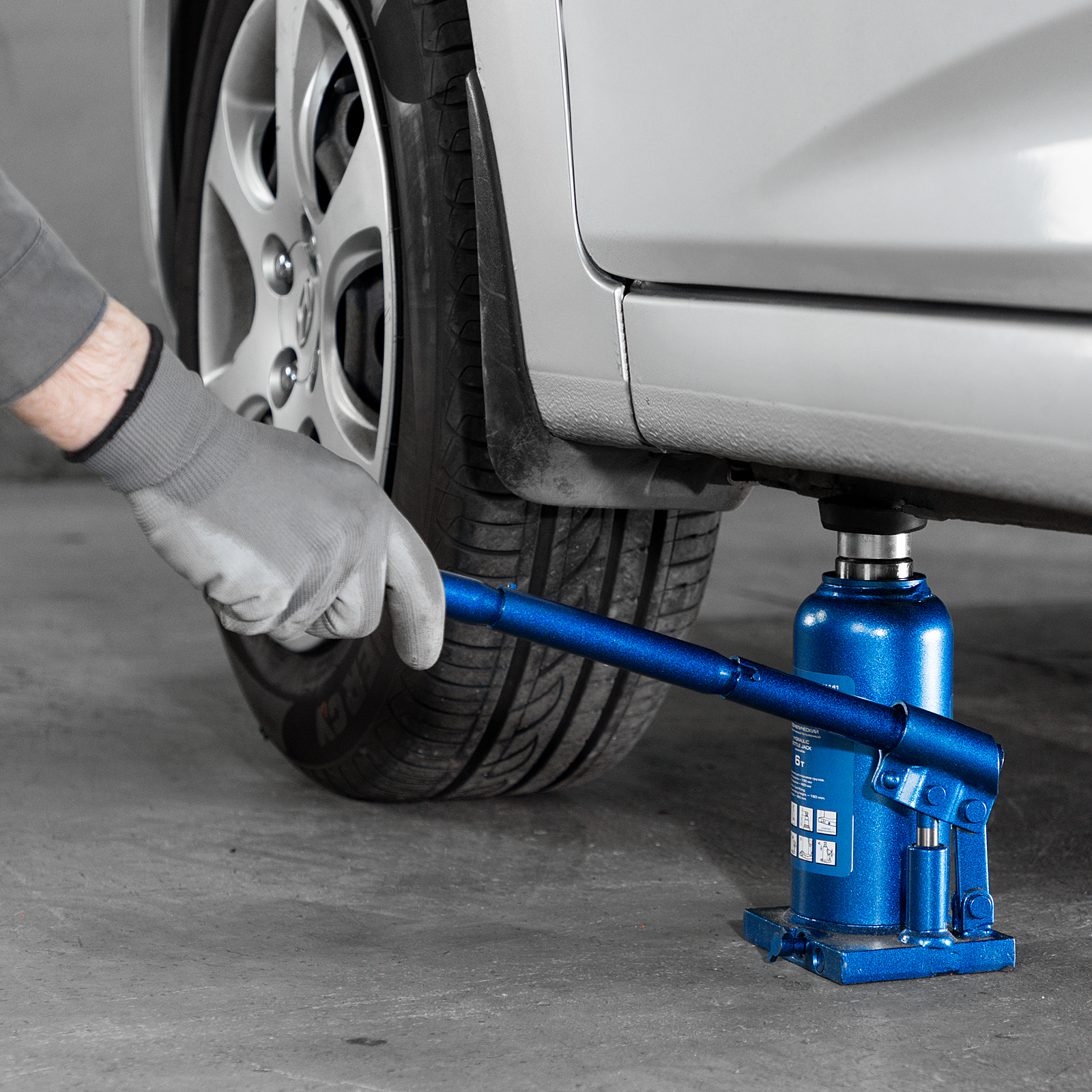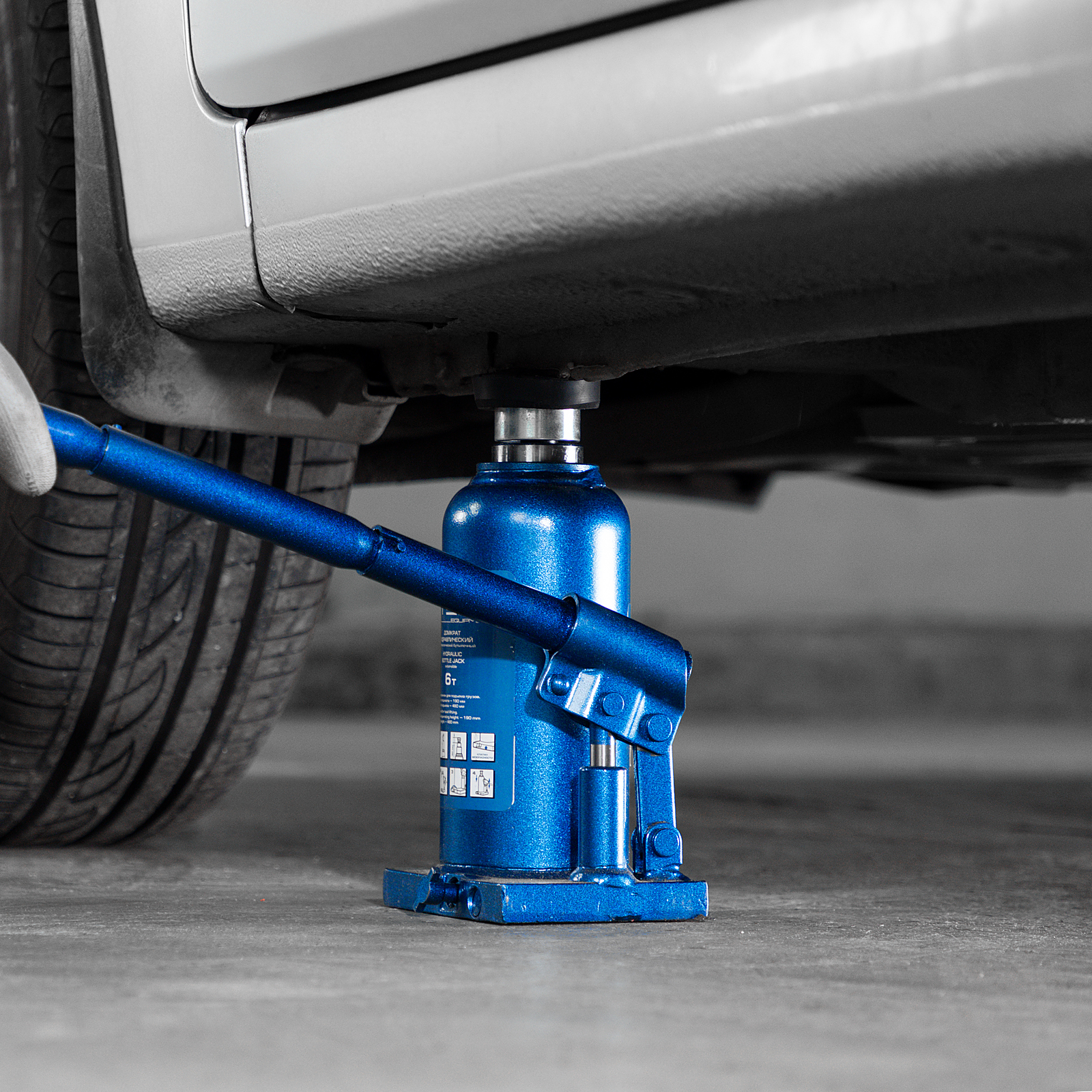 - Малый вес 5,5 кг — домкрат легко перемещать и перевозить в багажнике машины.