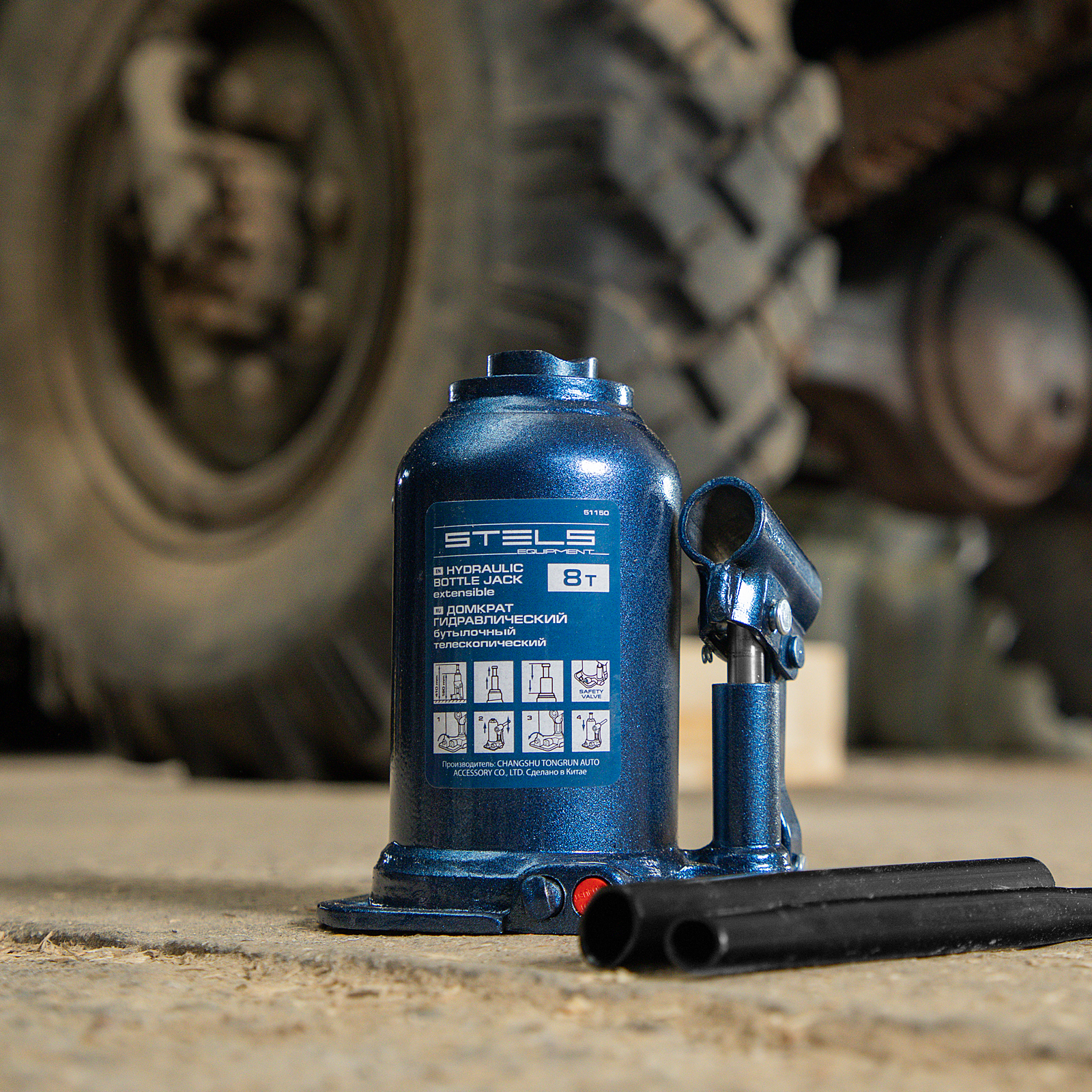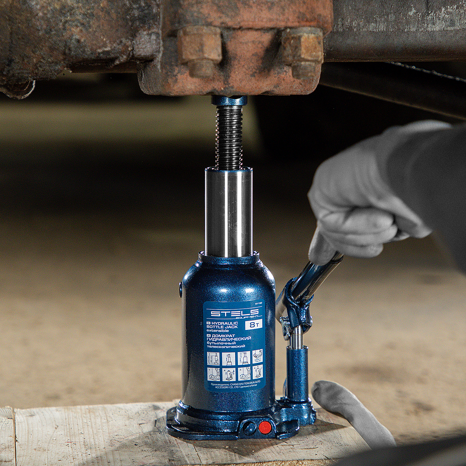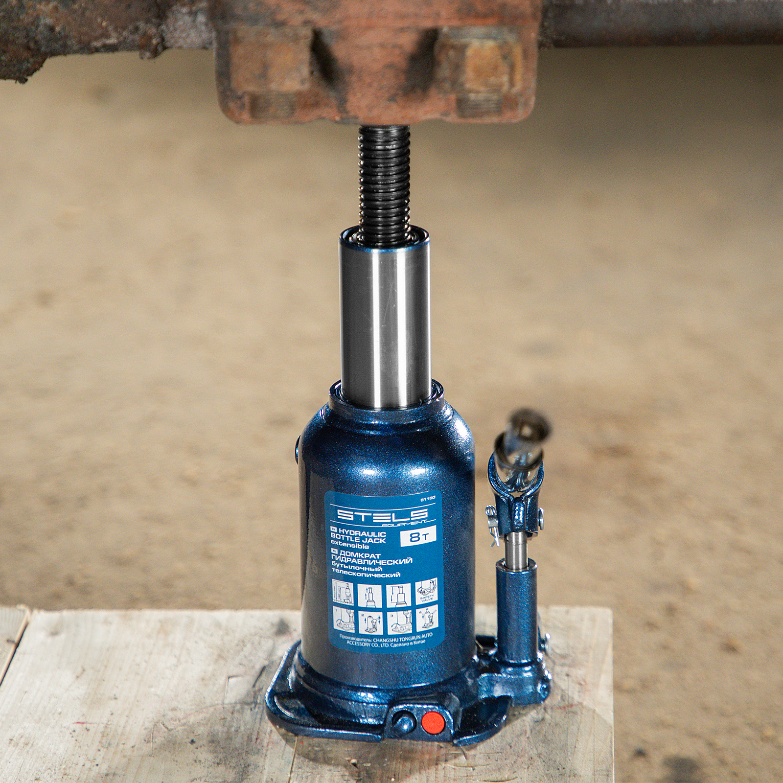 Домкрат гидравлический бутылочный Stels 51150, телескопический, используется для поднятия грузов весом до 8 т с на высоту 180-410 мм. Не требует больших усилий и оптимален для автомобилей с большим клиренсом. Домкрат можно использовать в гараже для самостоятельного ремонта машины или в автосервисе для решения профессиональных задач.