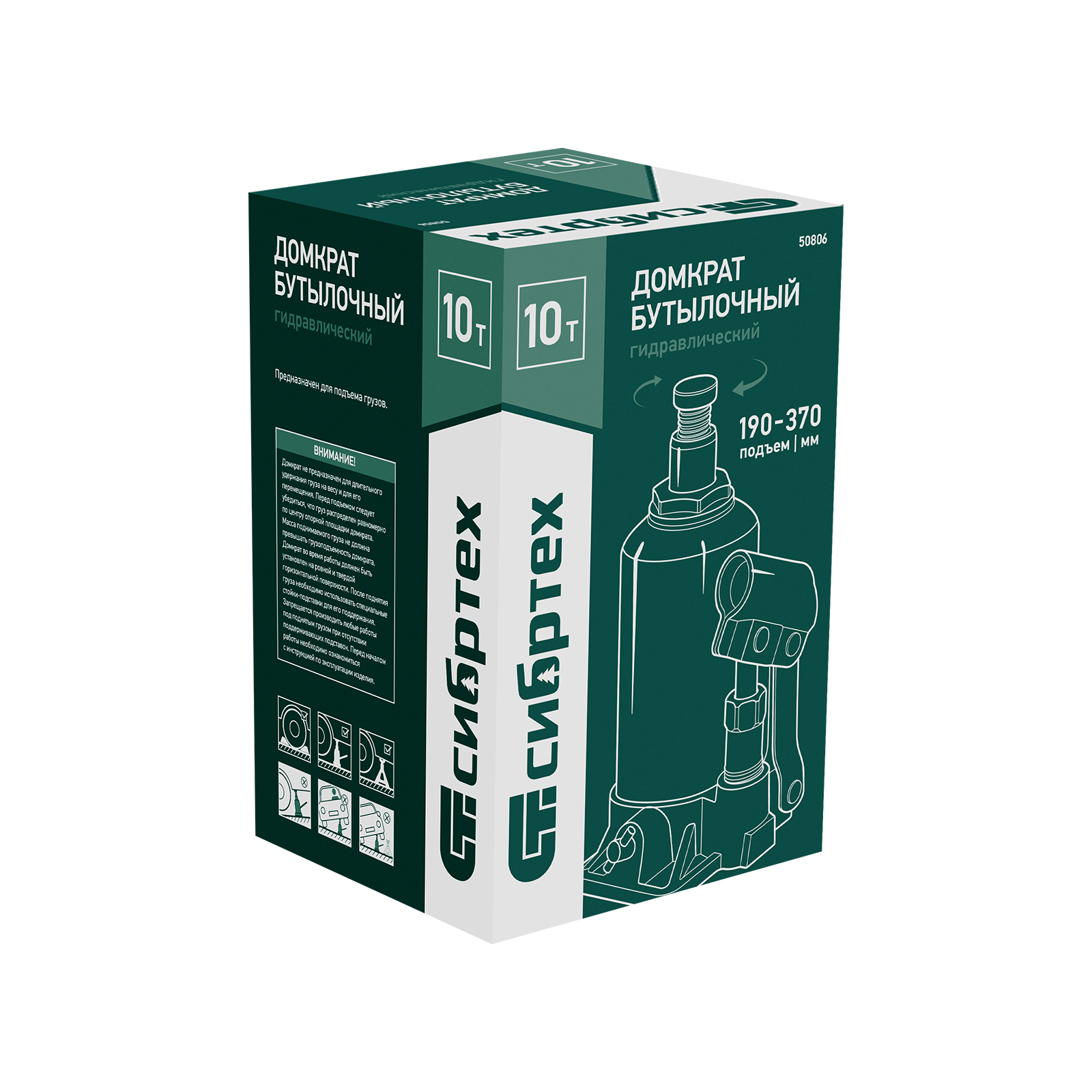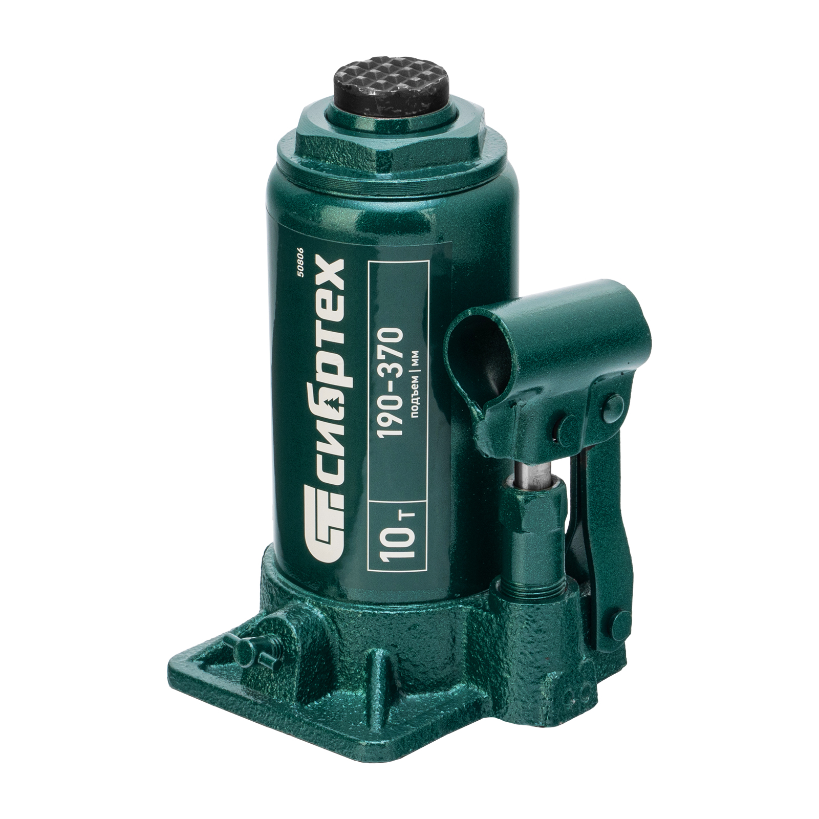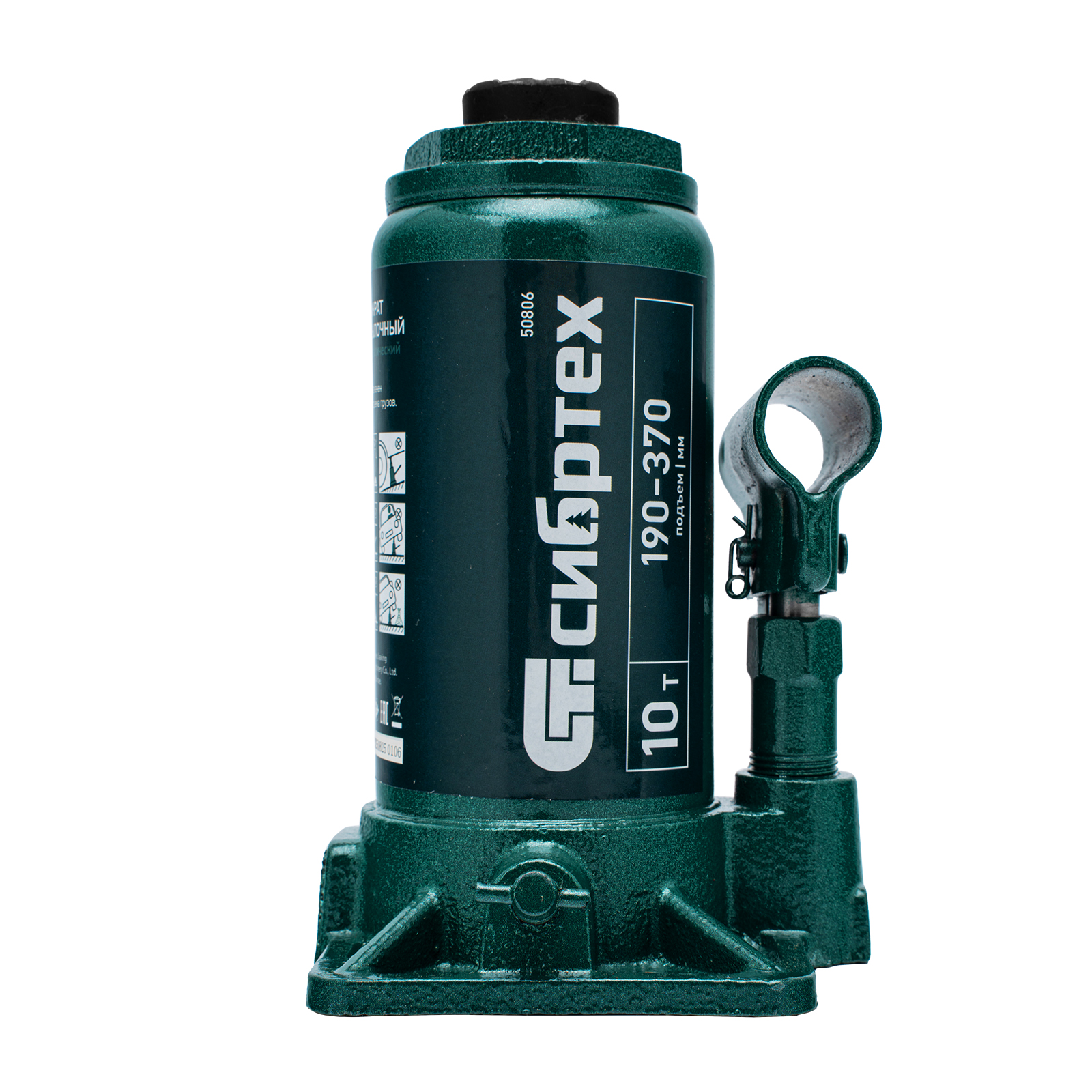 Домкрат гидравлический бутылочный Сибртех 50806 предназначен для подъема грузов массой до 10 т на высоту от 190 до 370 мм. Не требует больших усилий от пользователя и значительно облегчает рабочий процесс. Домкрат будет полезен при проведении техобслуживания машины в автосервисе или гараже.