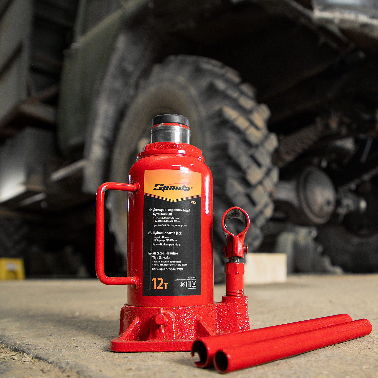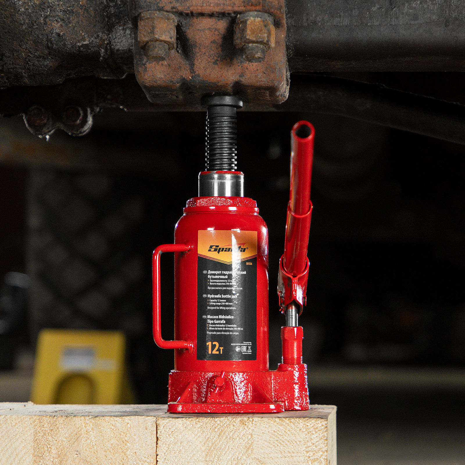 Гидравлический бутылочный домкрат Sparta 50326 рассчитан на подъем грузов весом до 12 т на высоту от 210 до 400 мм. Он пригодится как автолюбителям в гараже, так и профессиональным мастерам в автосервисах. Домкрат обеспечивает плавный подъем груза без особых усилий со стороны пользователя.