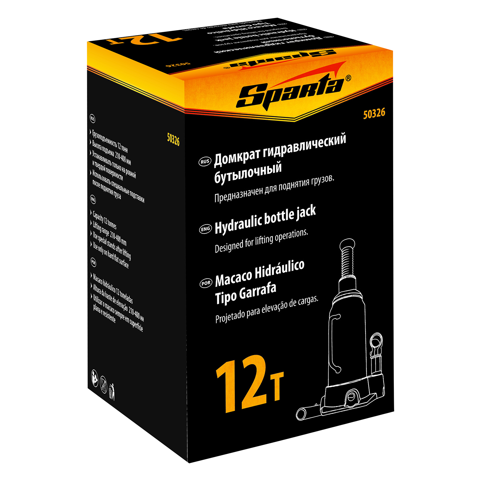 Домкрат гидравлический бутылочный, 12 т, h подъема 210-400 мм Sparta