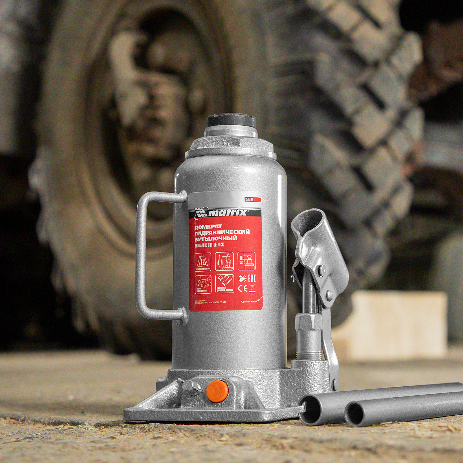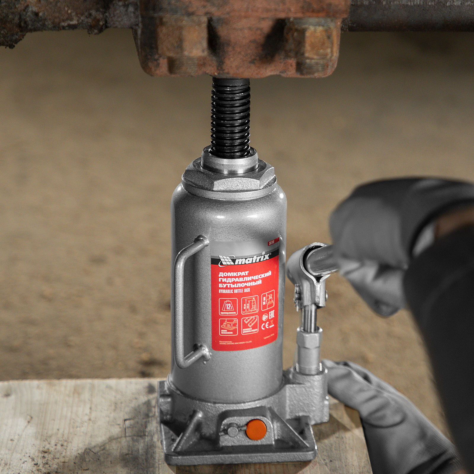 Домкрат гидравлический бутылочный, 12 т, h подъема 230-465 мм Matrix в Санкт-Петербурге