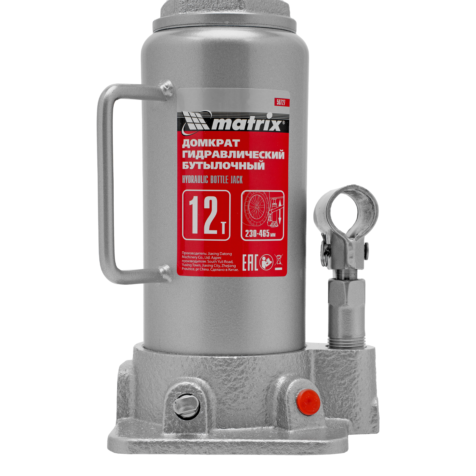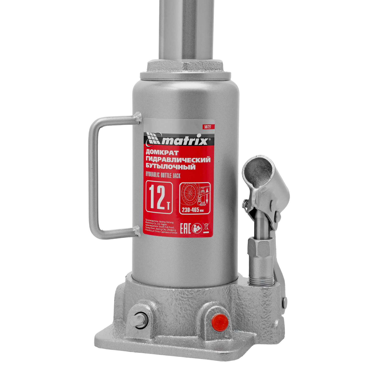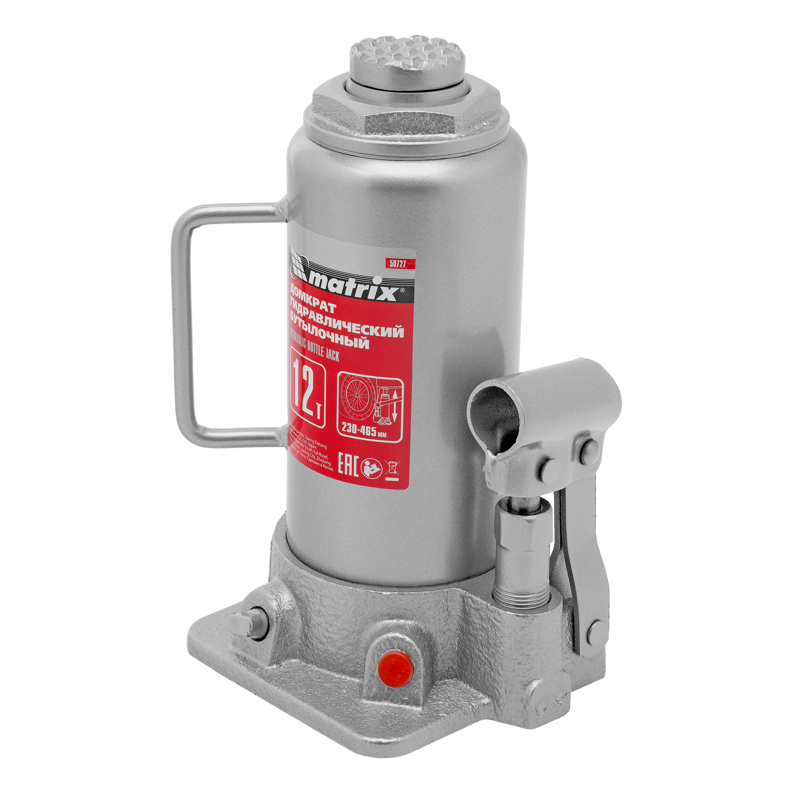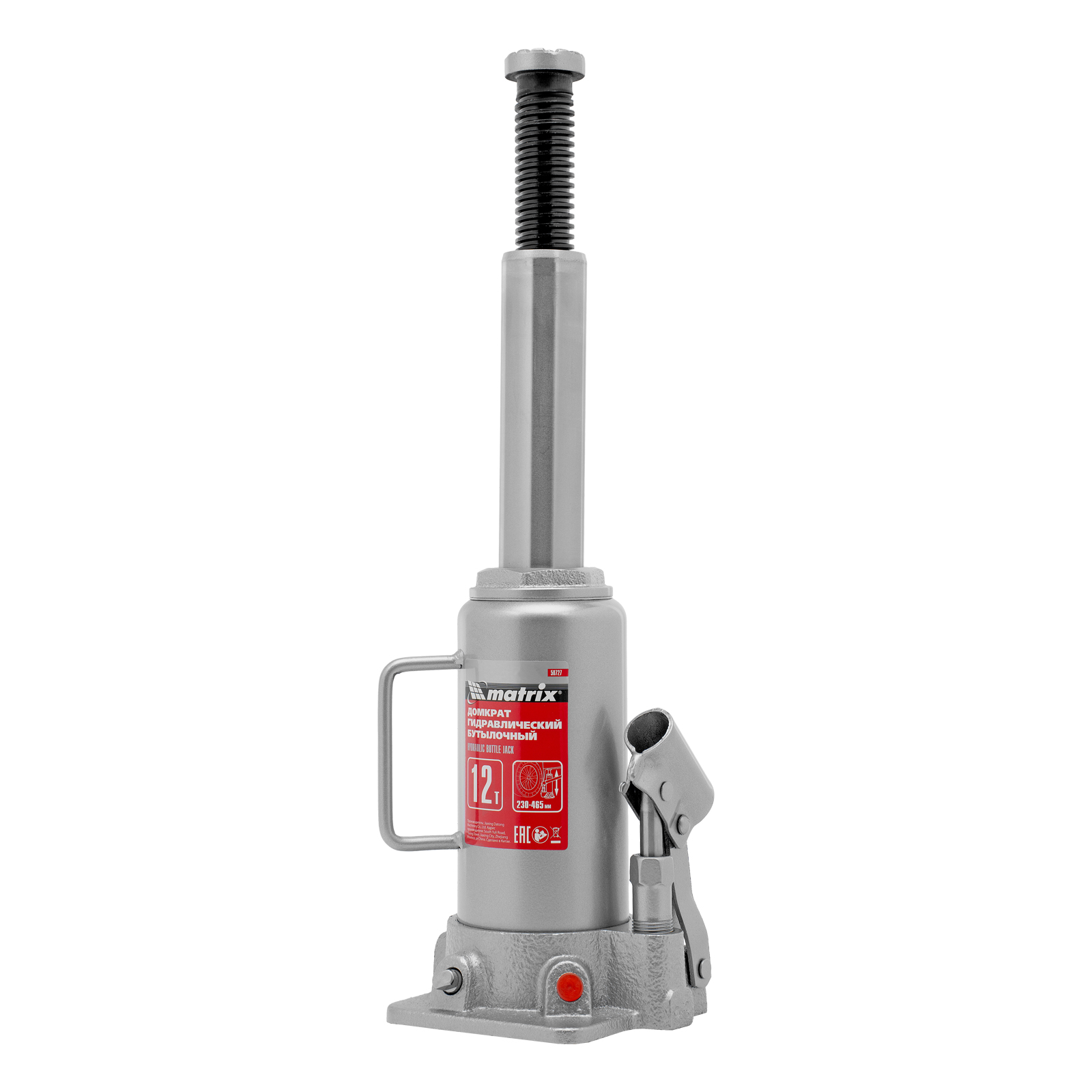 Домкрат гидравлический бутылочный, 12 т, высота подъема 230-465 мм Matrix в Санкт-Петербурге