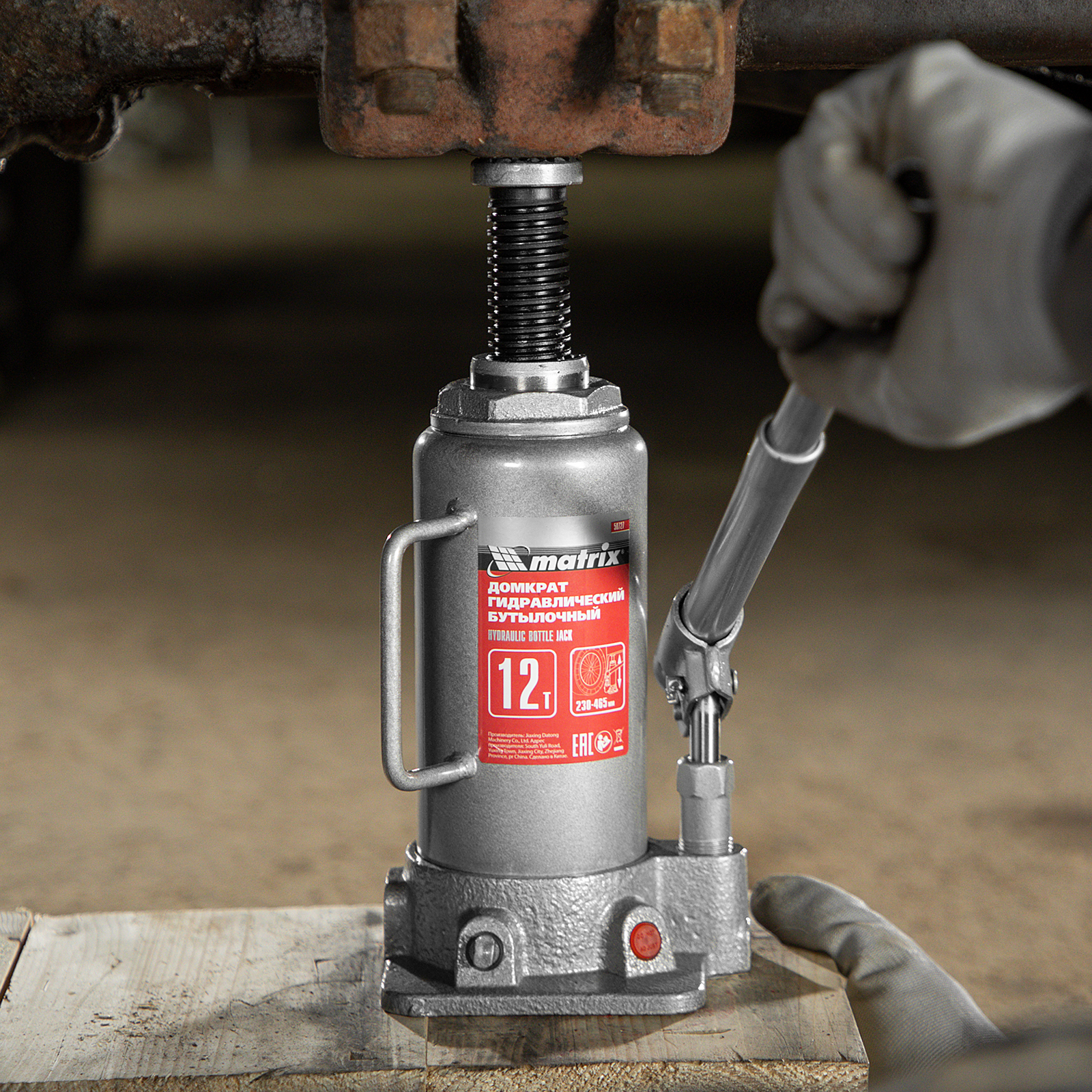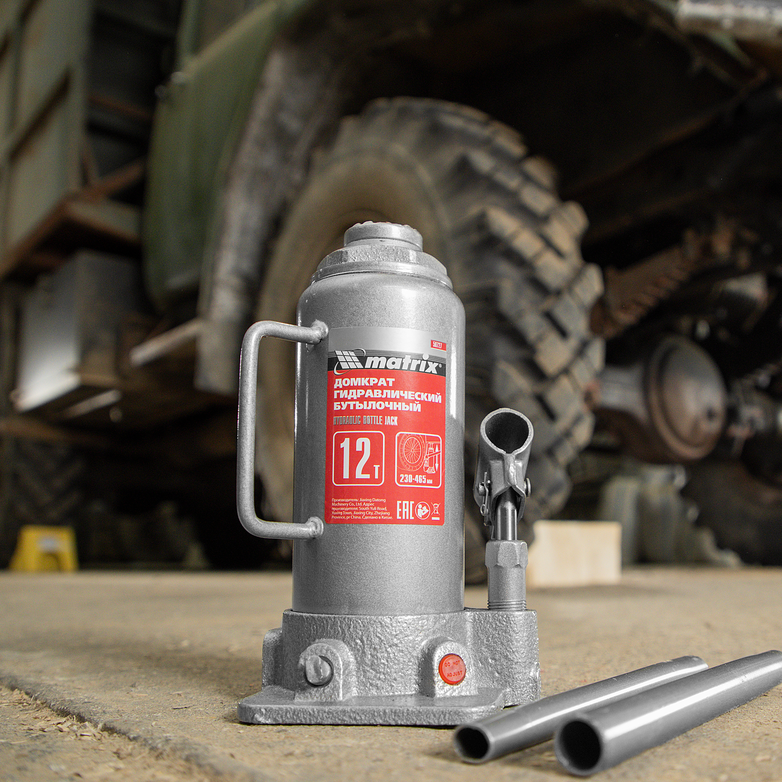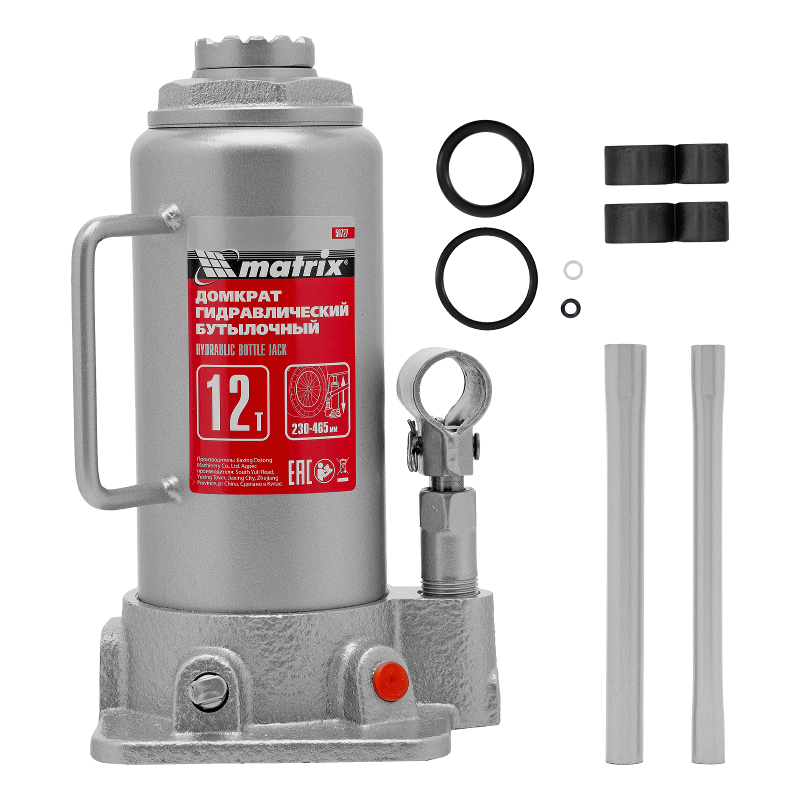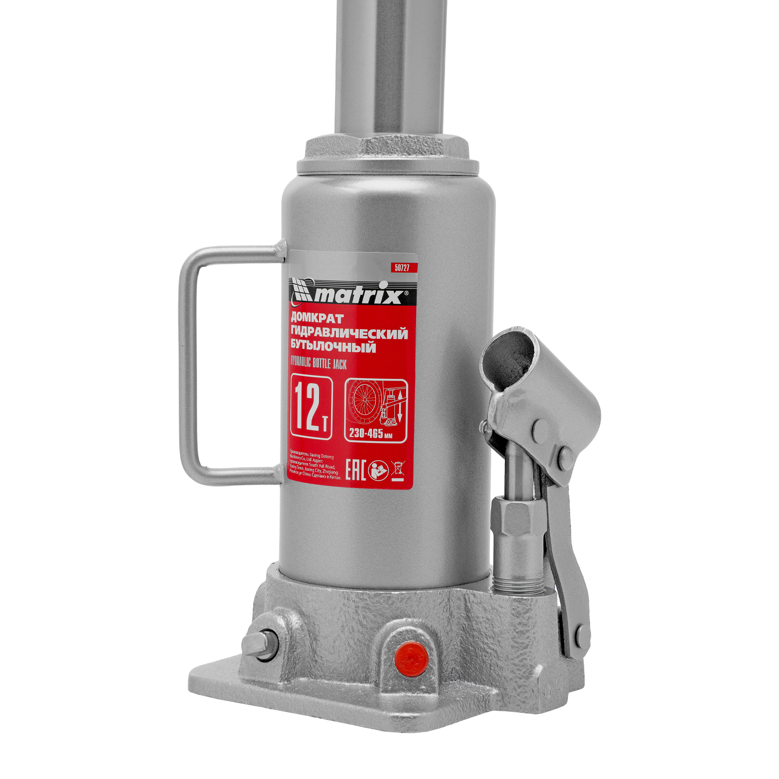 Домкрат гидравлический бутылочный, 12 т, высота подъема 230-465 мм Matrix в Санкт-Петербурге