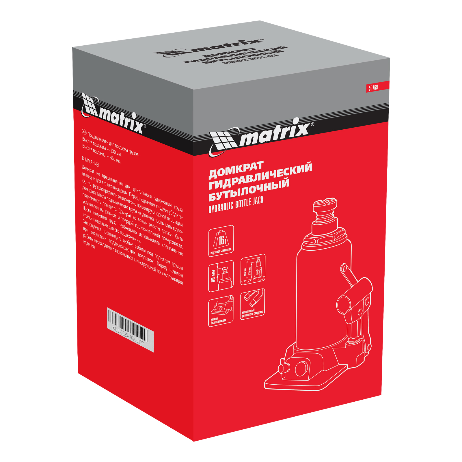 Домкрат гидравлический бутылочный, 16 т, h подъема 230-460 мм Matrix в Санкт-Петербурге